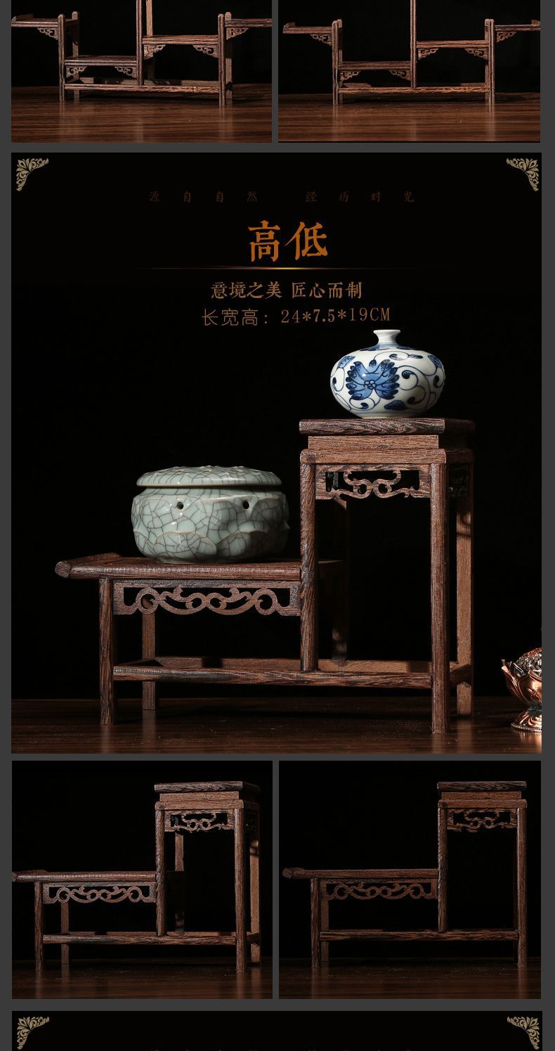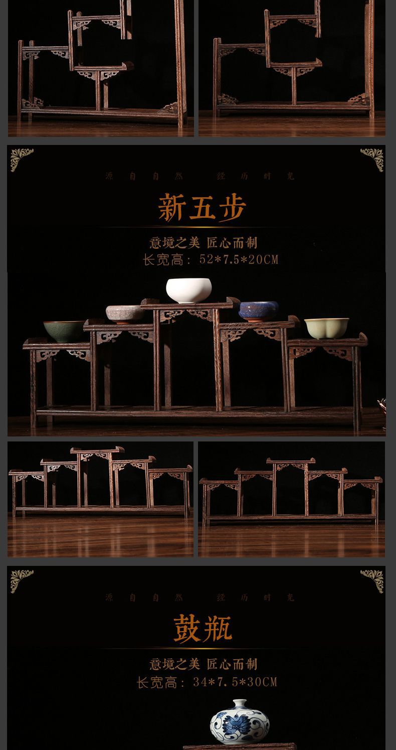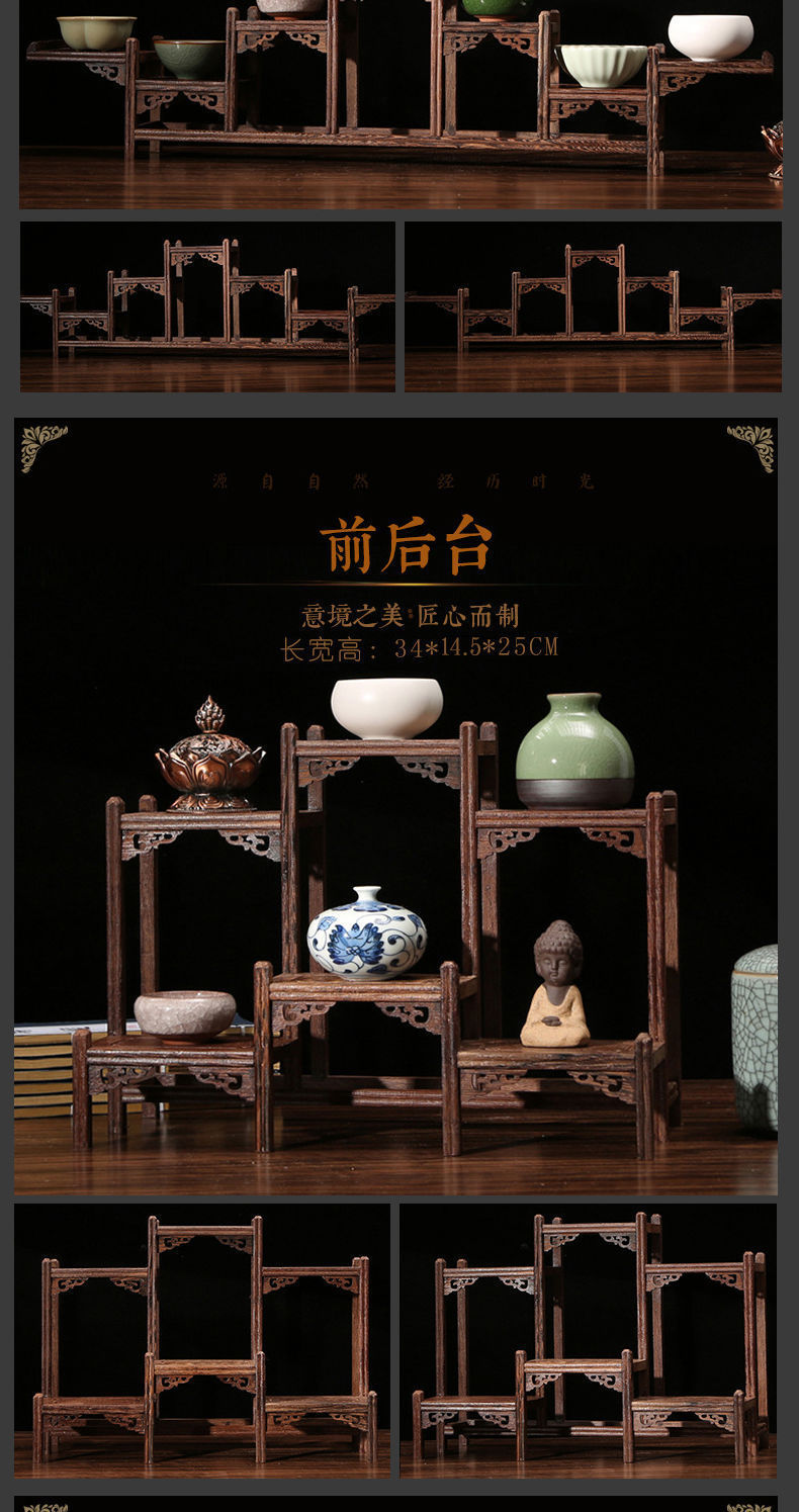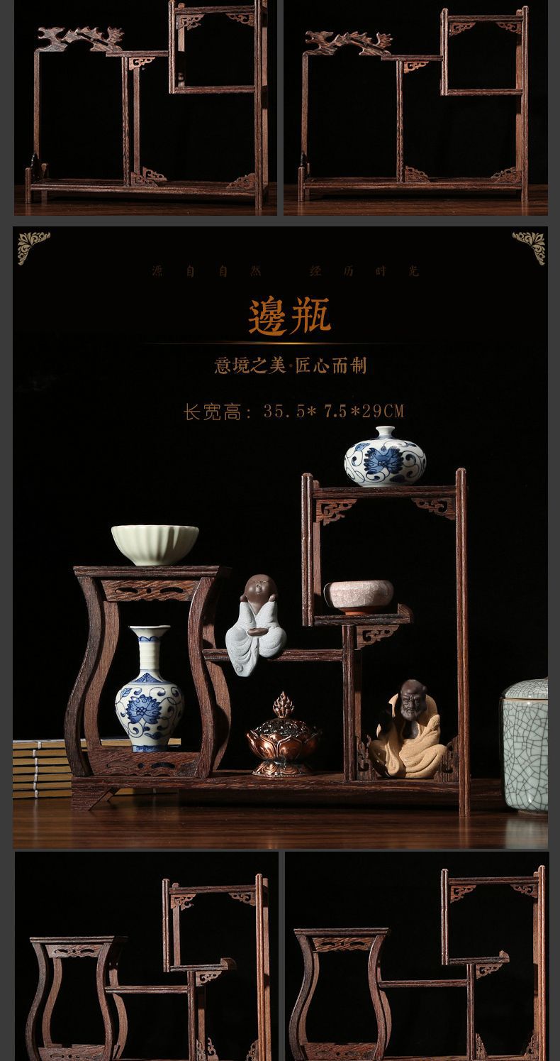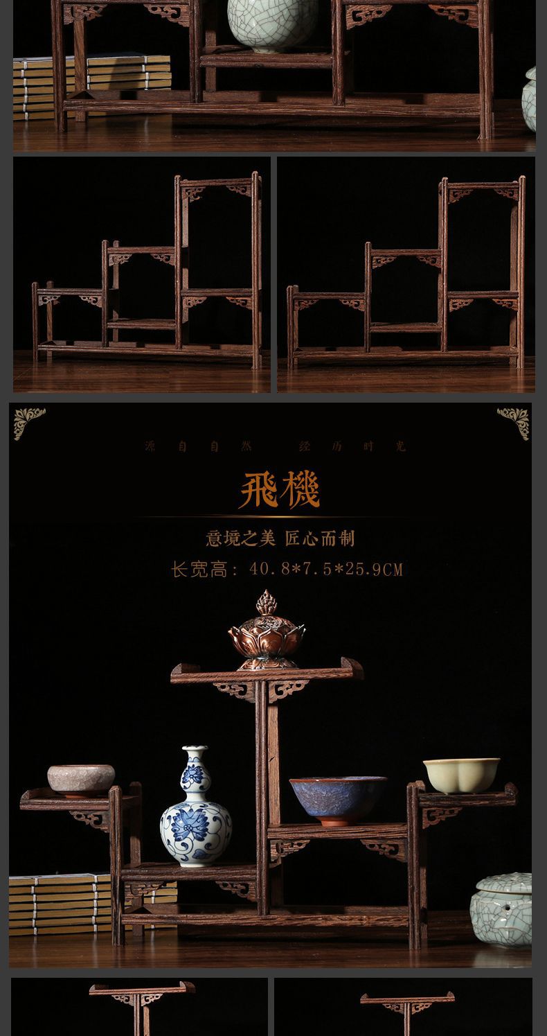 치킨 윙 나무 골동품 랙 중국 스타일의 작은 Duobao Pavilion 차 세트 랙 솔리드 우드 스토리지 랙 주전자 랙 장식품 랙 Zhan Ping Run