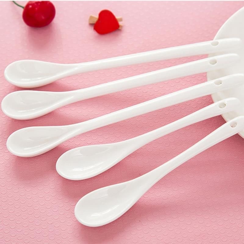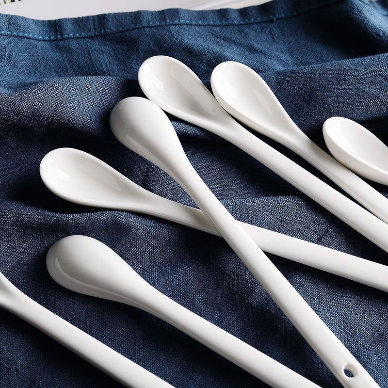 현대 간단한 화이트 하이 컬러 값 긴 손잡이 수프 스푼 도매 가정용 호텔 라이스 스푼 디저트 커피 세라믹 스푼