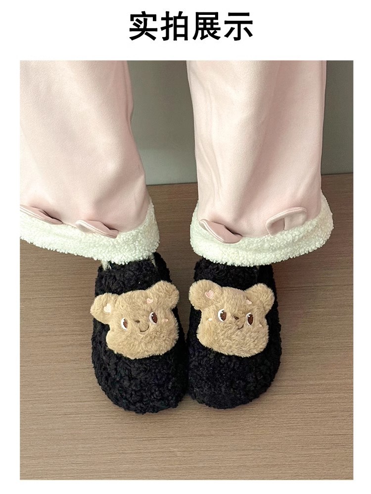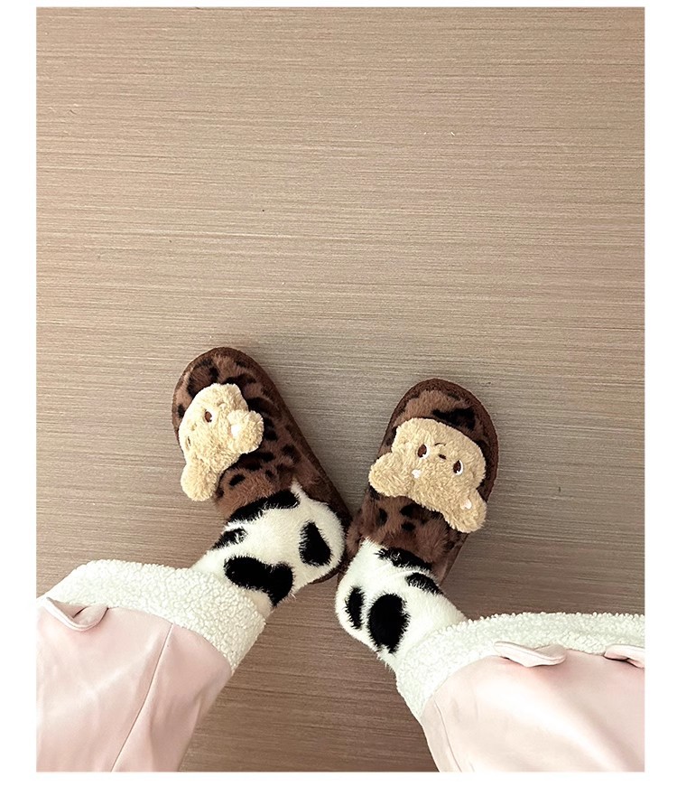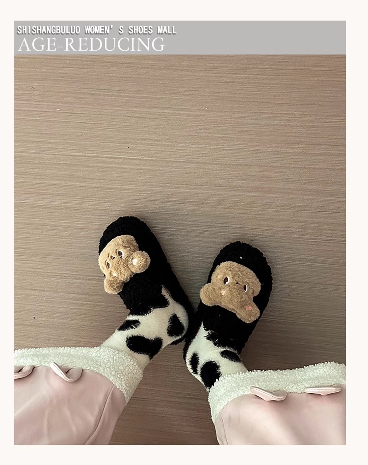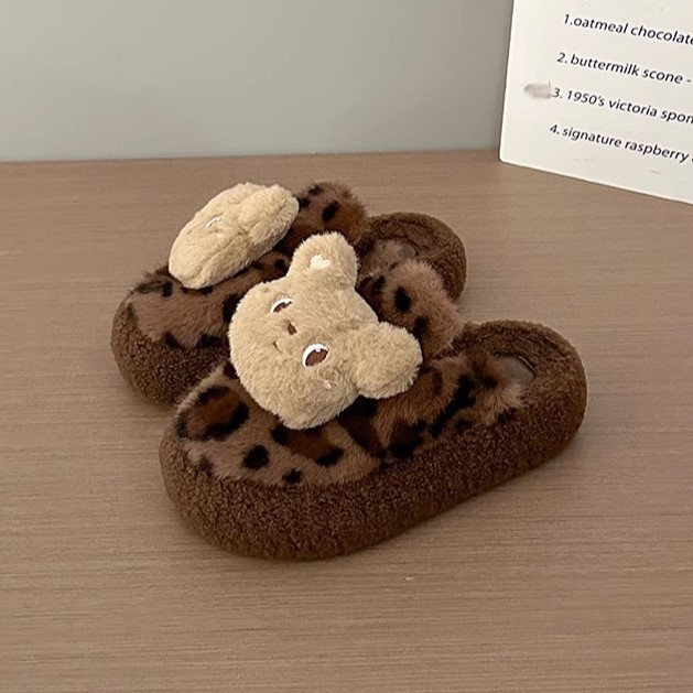 귀여운 만화 레오파드 무늬 모피 신발 여성의 2024 가을과 겨울 새로운 의상 틈새 디자인 센스 기모 따뜻한 바오터 드래그스토어 가기