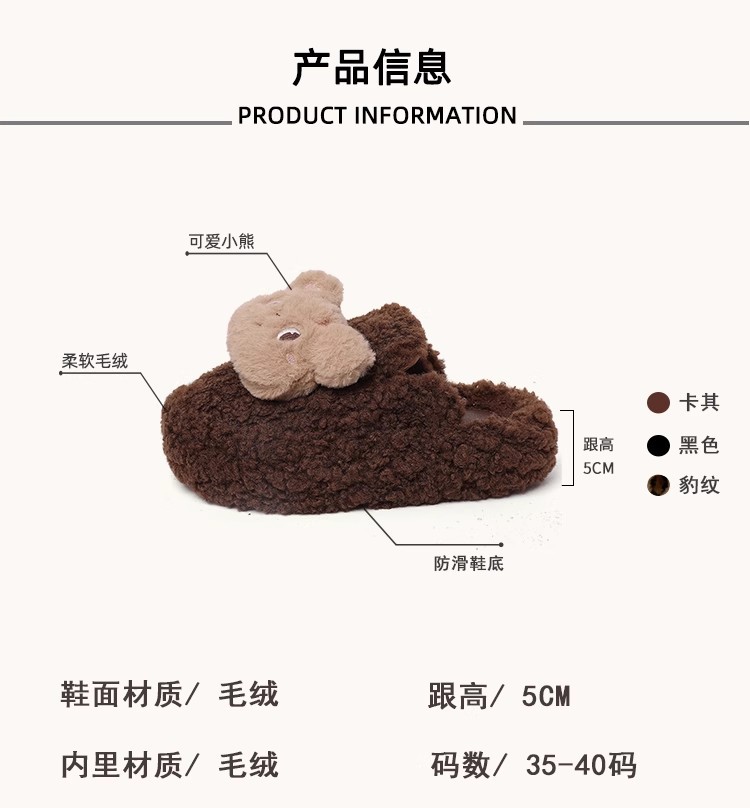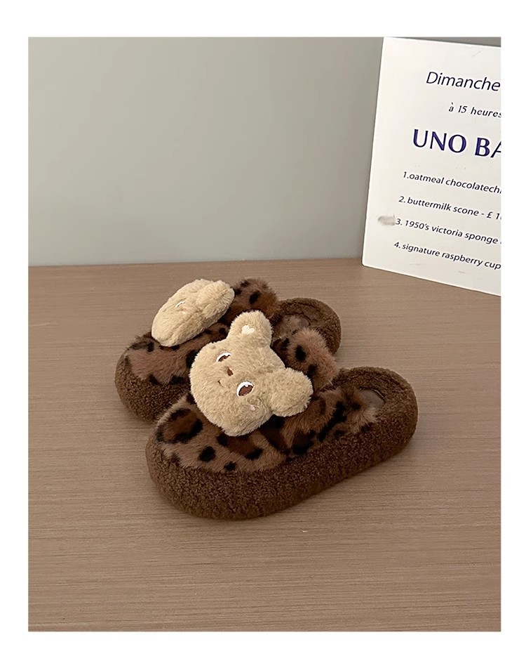 귀여운 만화 레오파드 무늬 모피 신발 여성의 2024 가을과 겨울 새로운 의상 틈새 디자인 센스 기모 따뜻한 바오터 드래그
