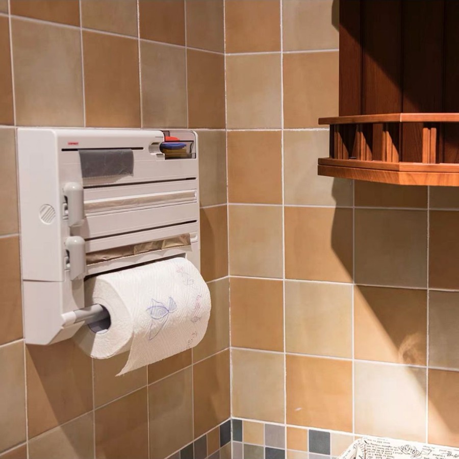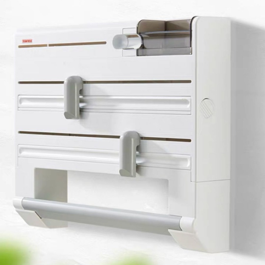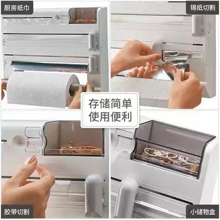 국경 간 3 대 1 다기능 스토리지 랙 주방 랙 플라스틱 랩 커터 비 천공 주석 종이 절단