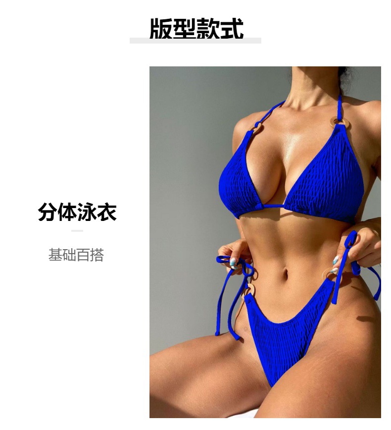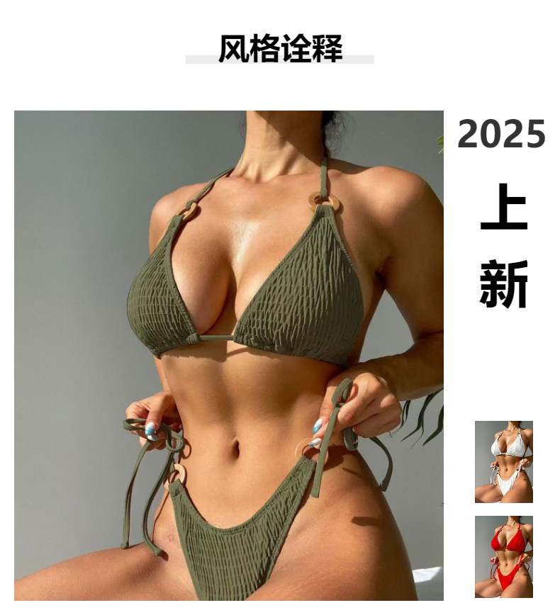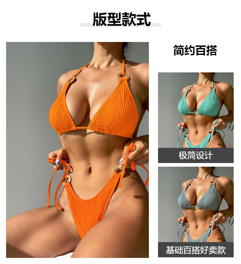 2024 년 대외 무역 새로운 분할 비키니 나일론 섹시한 단색 묶인 로프 비치 여성 비키니 수영복