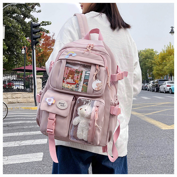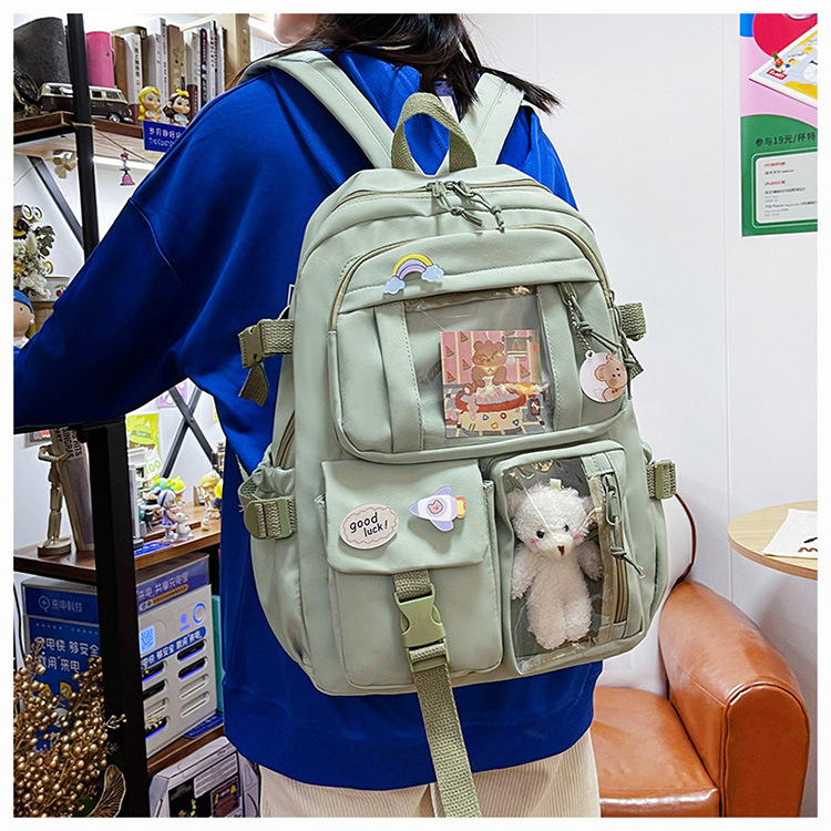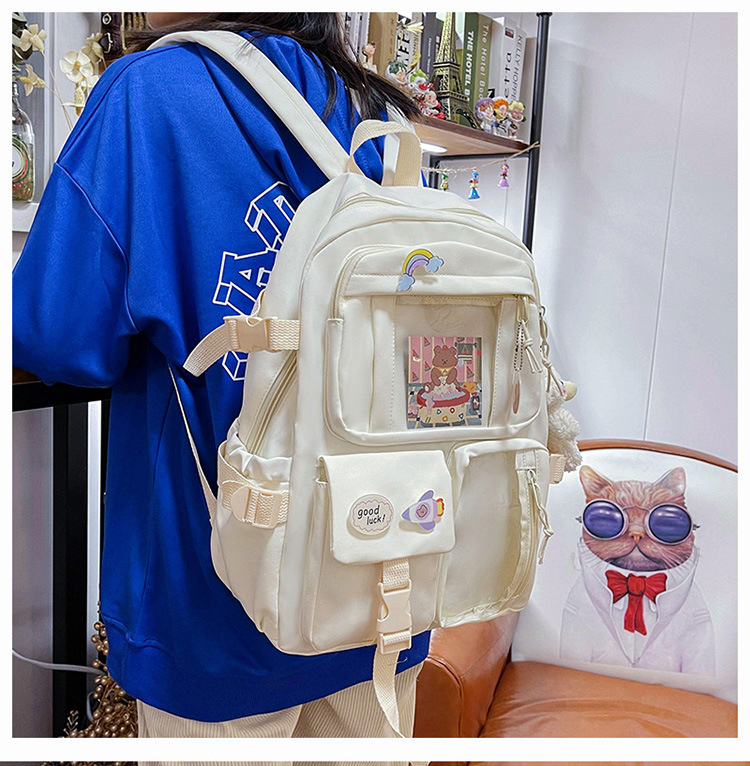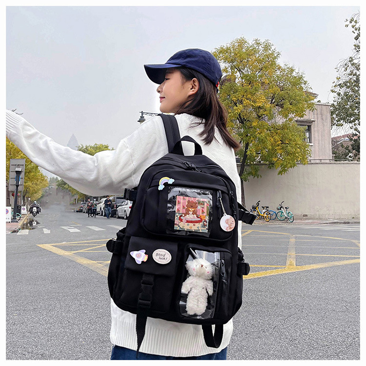 인스타일 대용량 고교생 스쿨백 여성 한국식 하라주쿠 울장 올매치 백팩 중학생 백팩스토어 가기