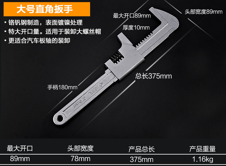 Weida 라이트 핸들 직각 조절 가능한 렌치 드레인 렌치 9 인치 11 인치 15 인치 파이프 렌치 멀티 사용 대형 오프닝