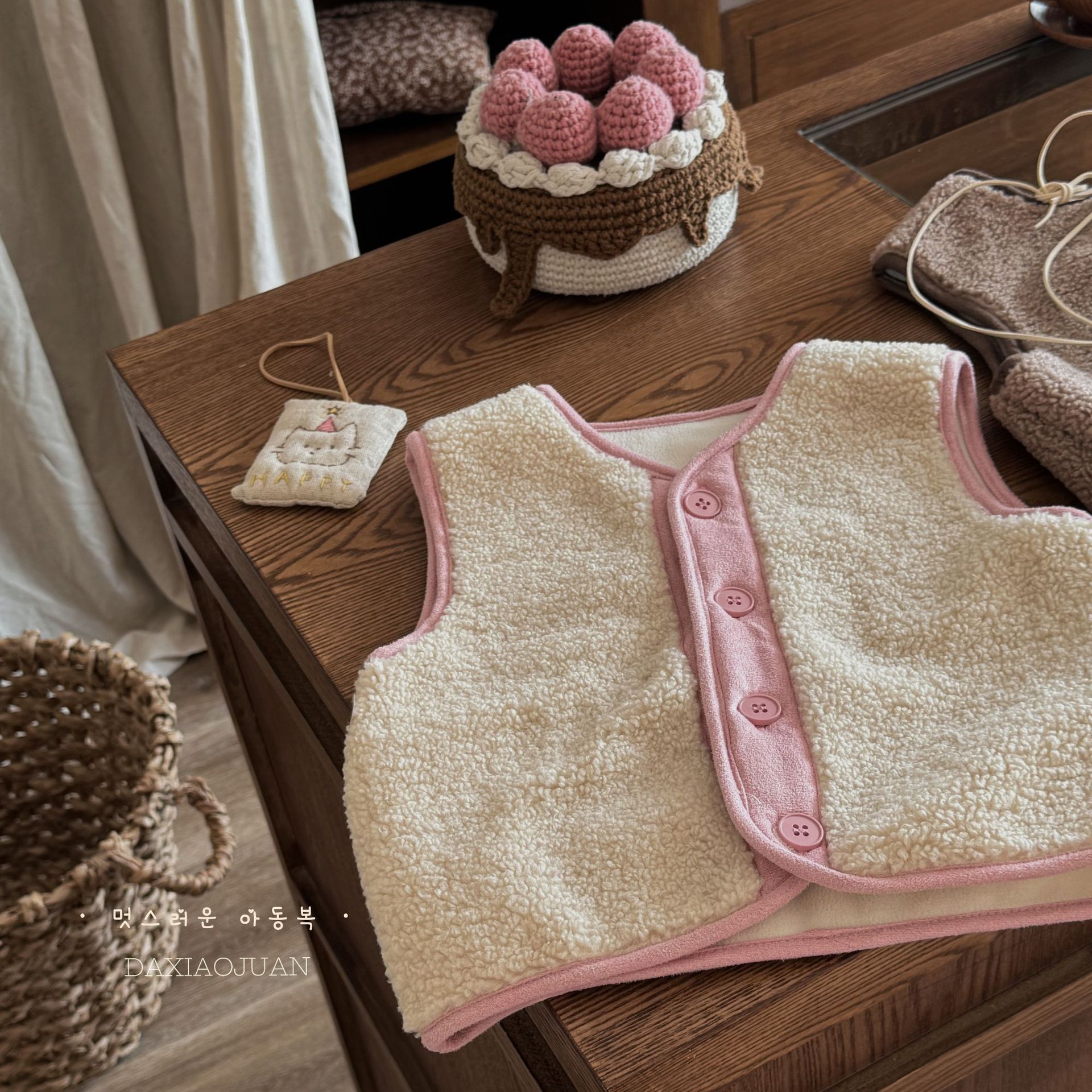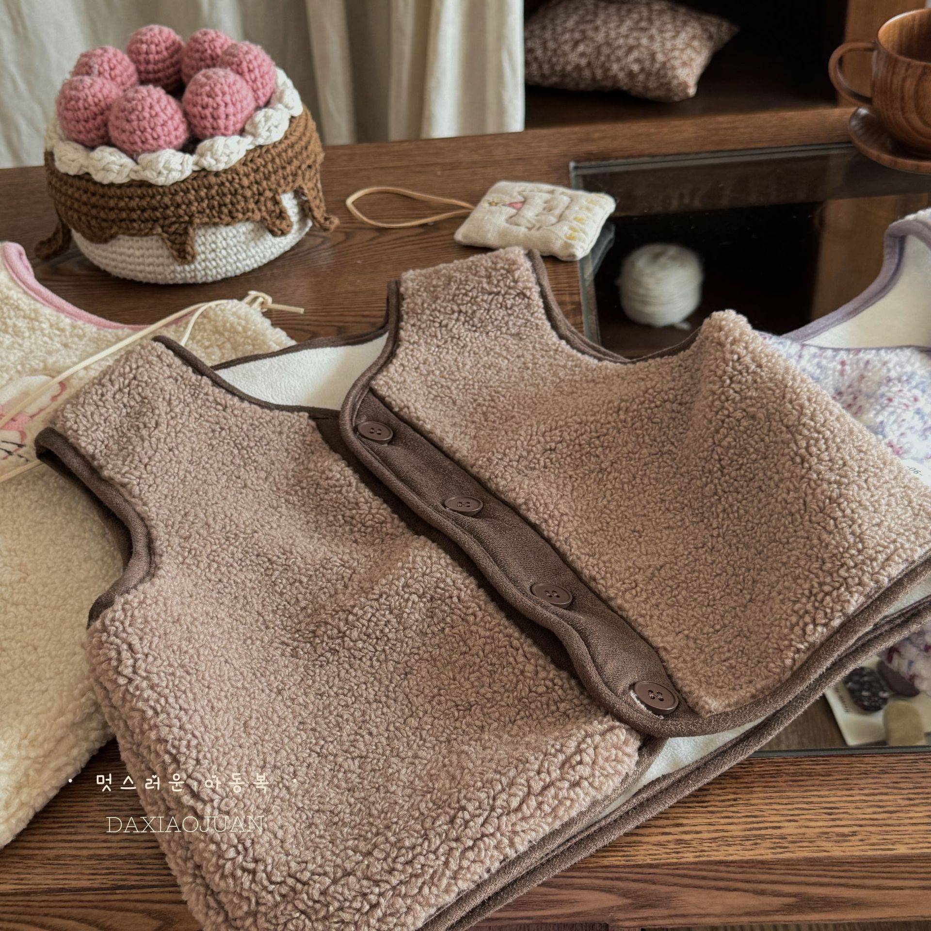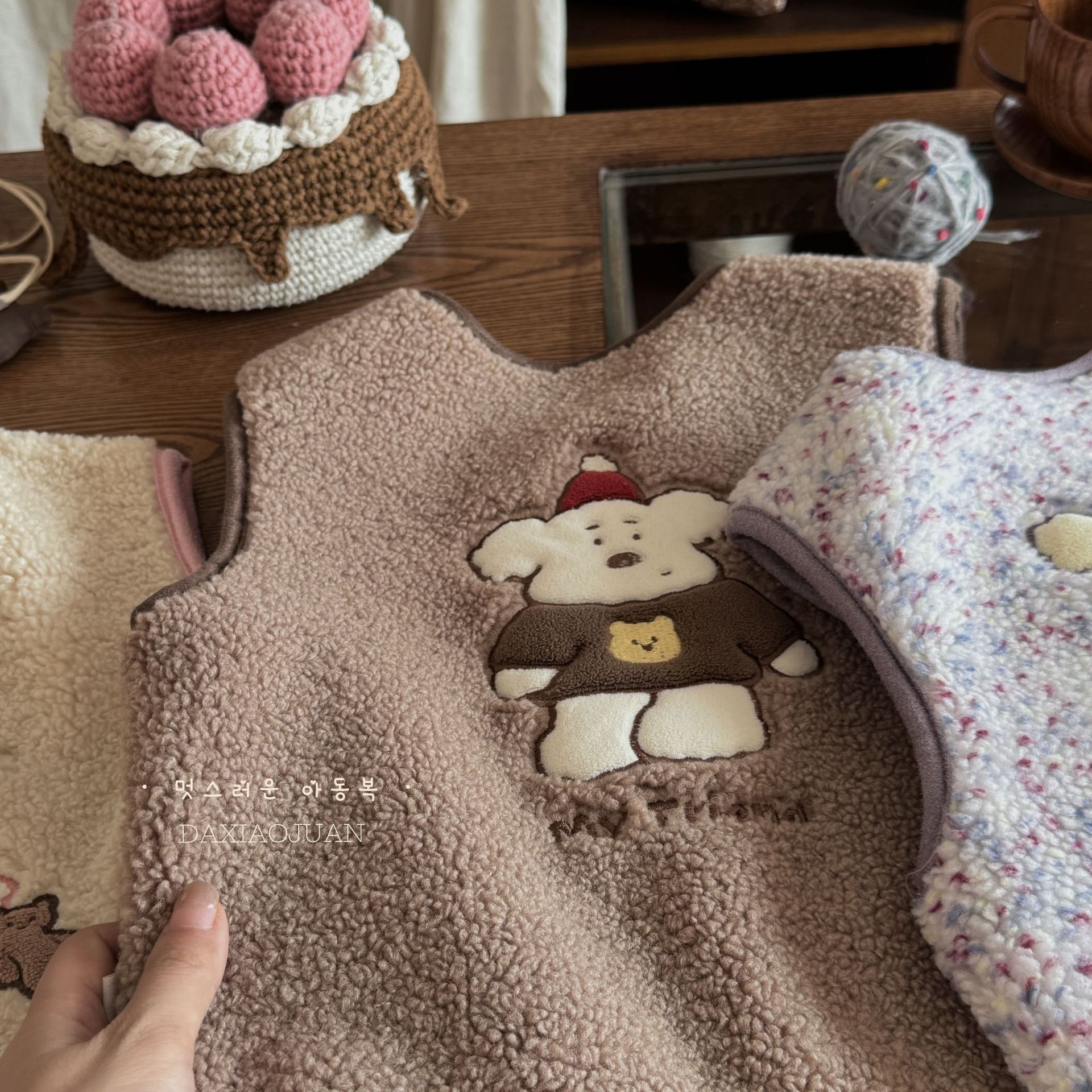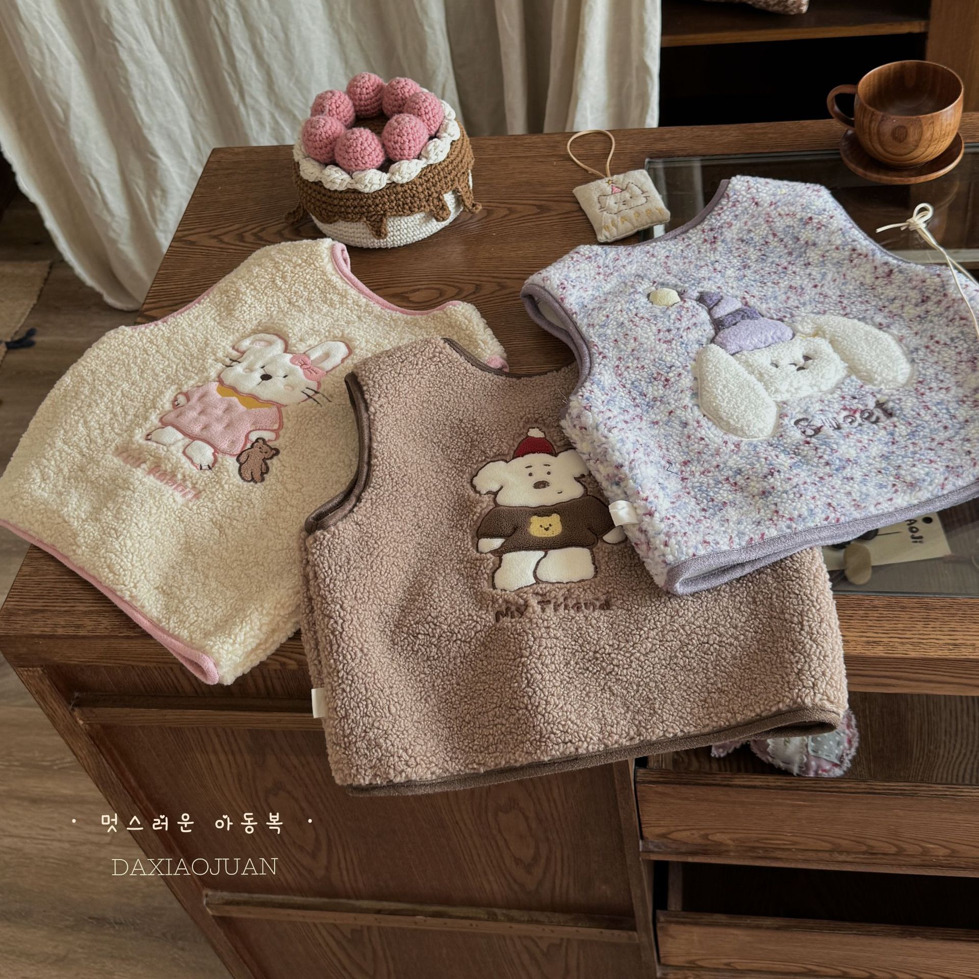 재고 사이즈 롤 24 가을과 겨울 어린이 봉제 자수 만화 벨벳 귀여운 기모 작은 조끼 착용 조끼 아기스토어 가기