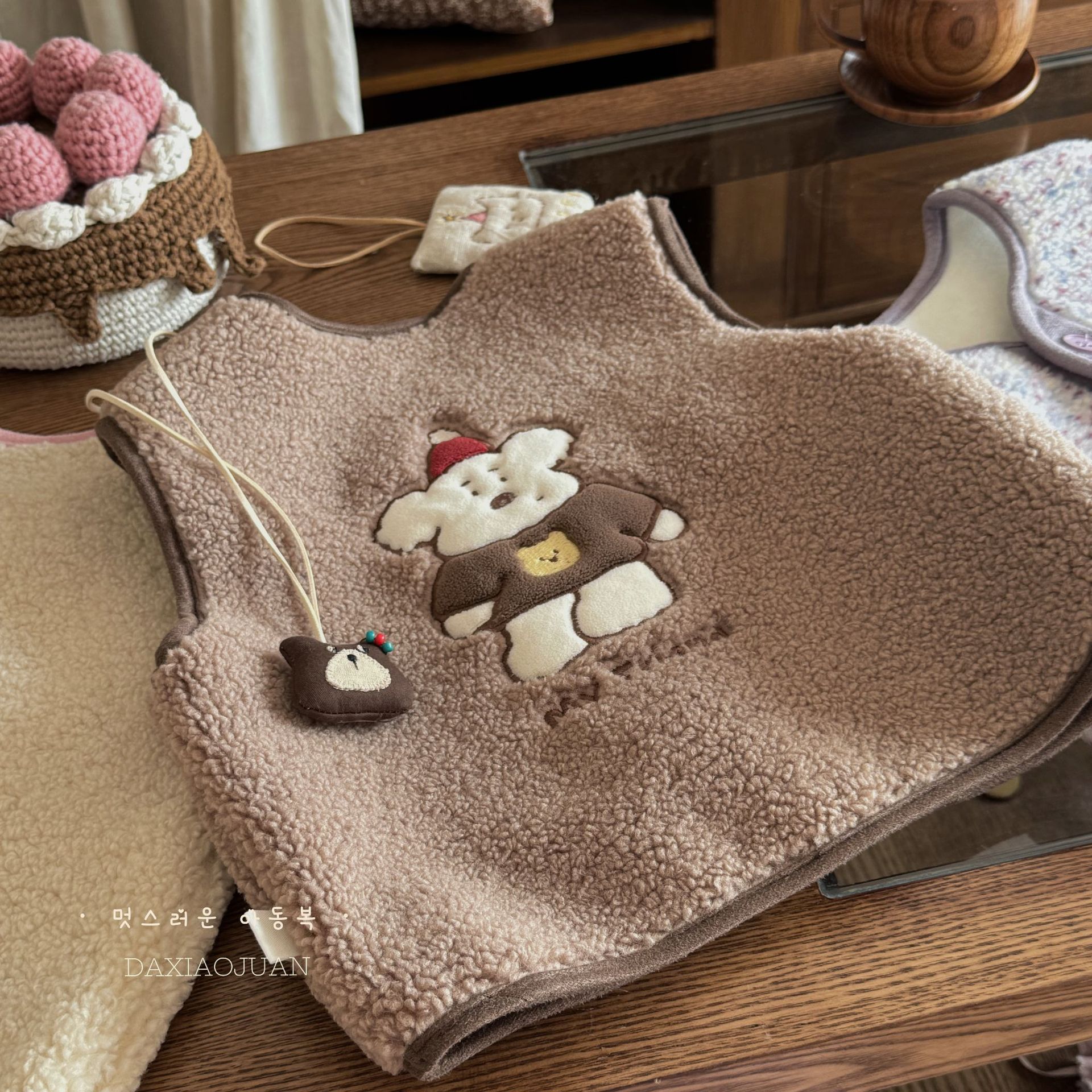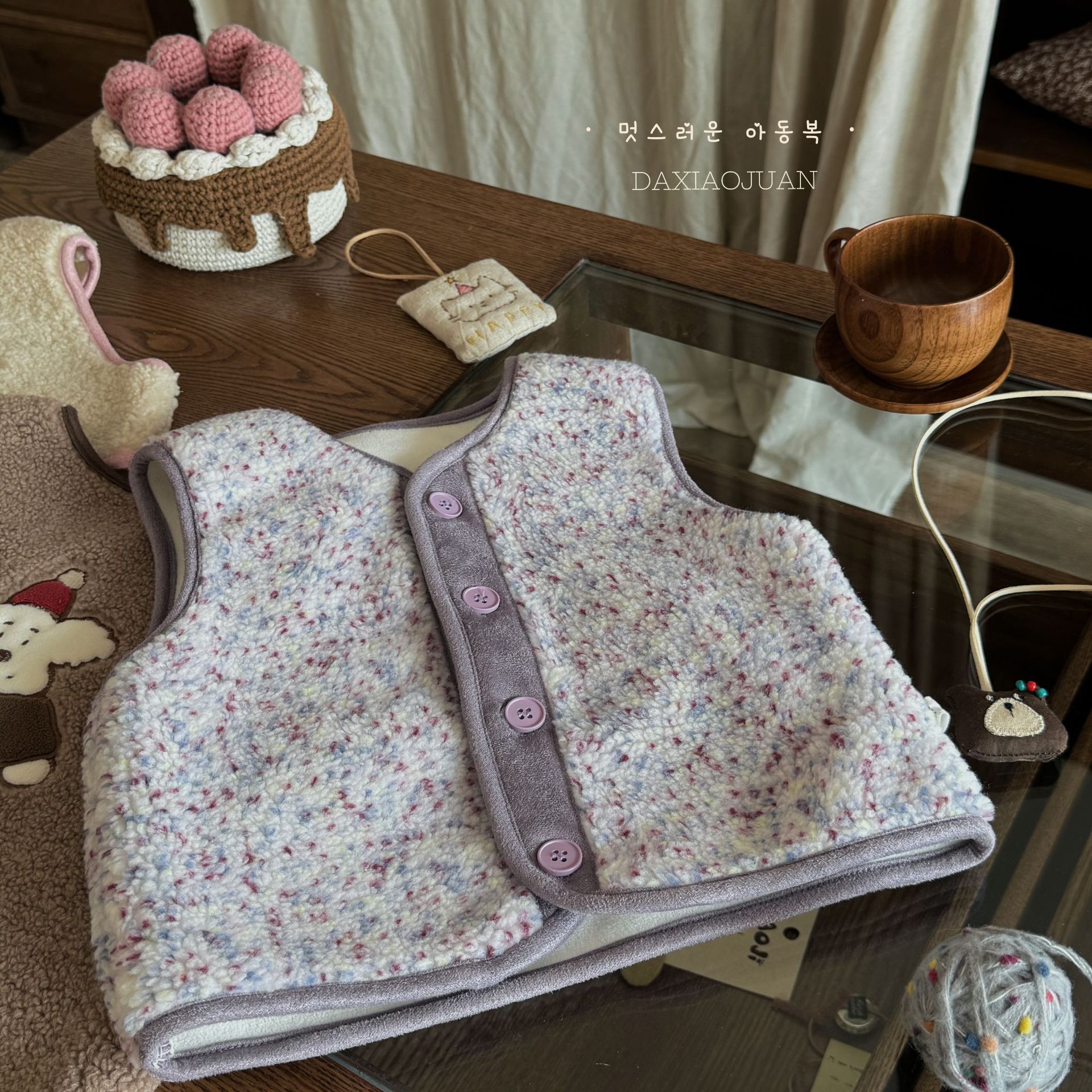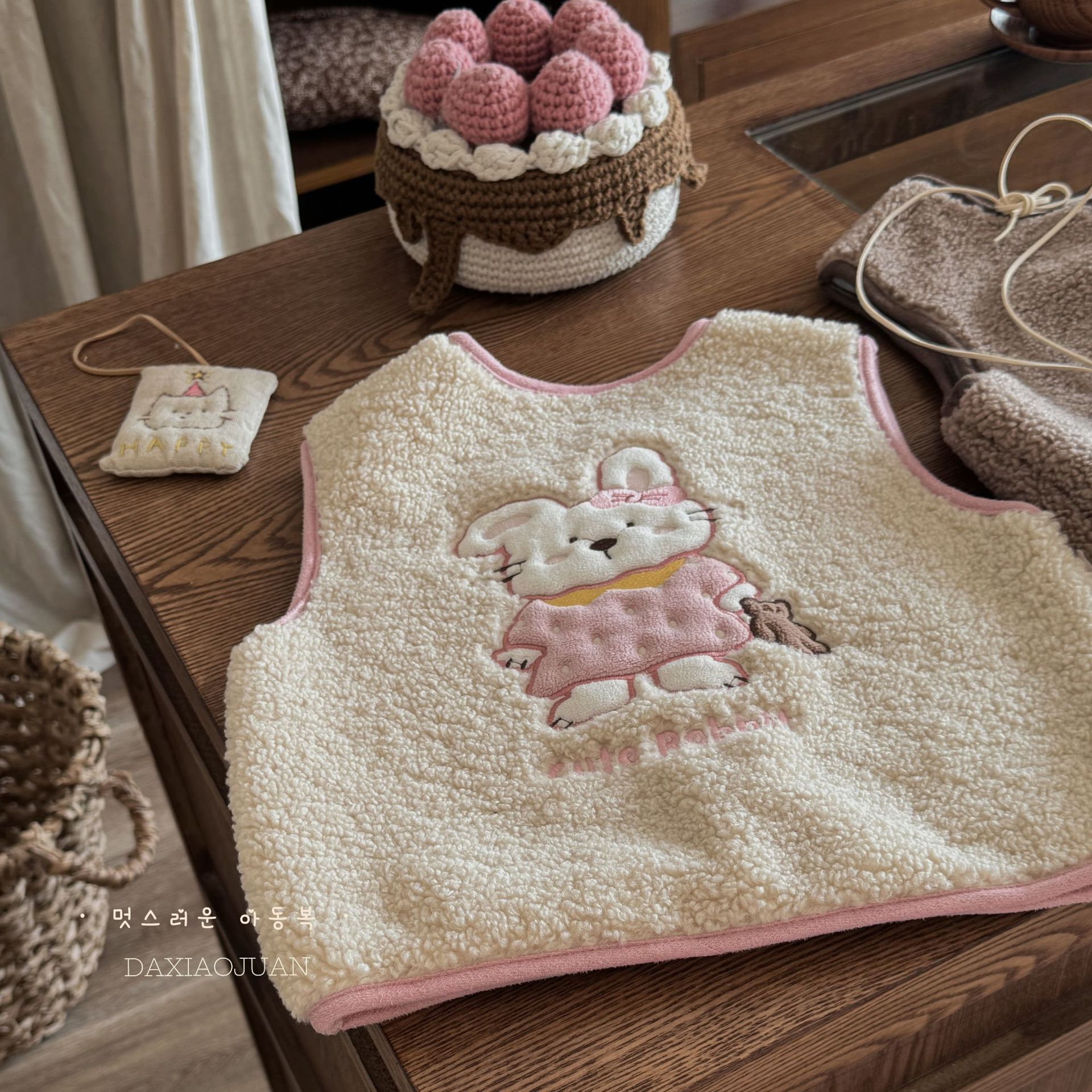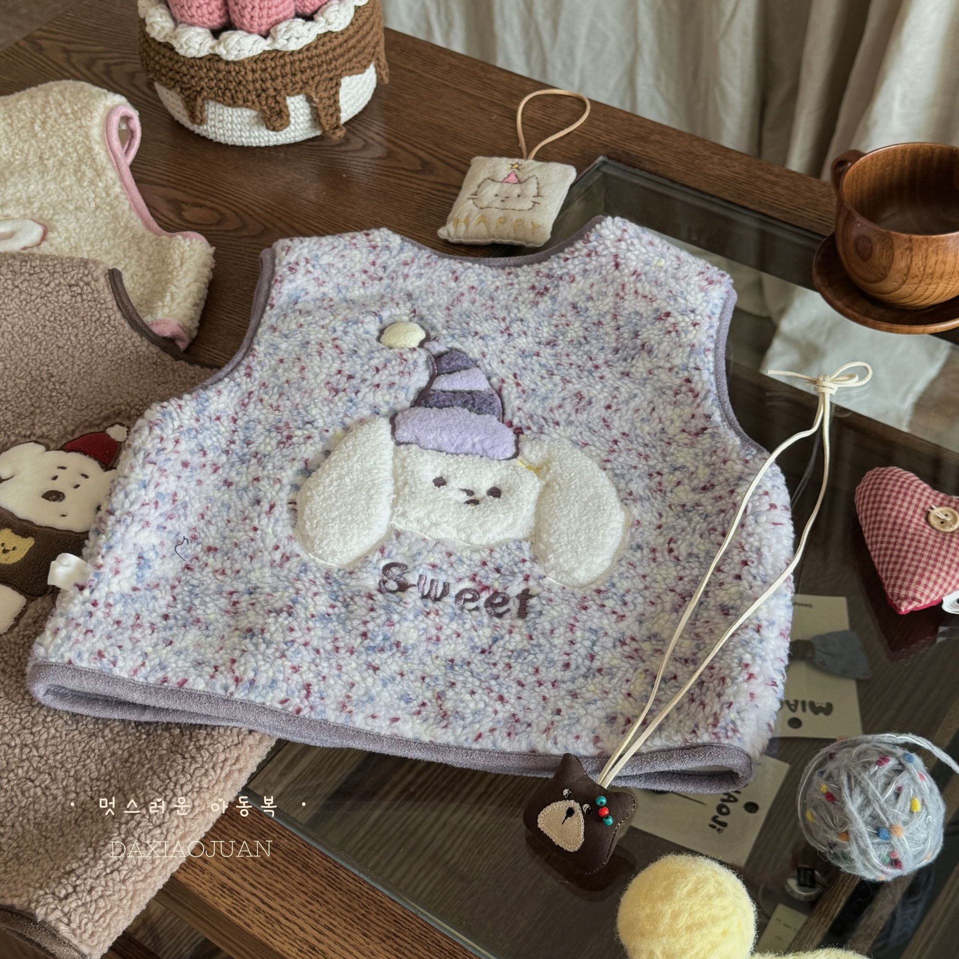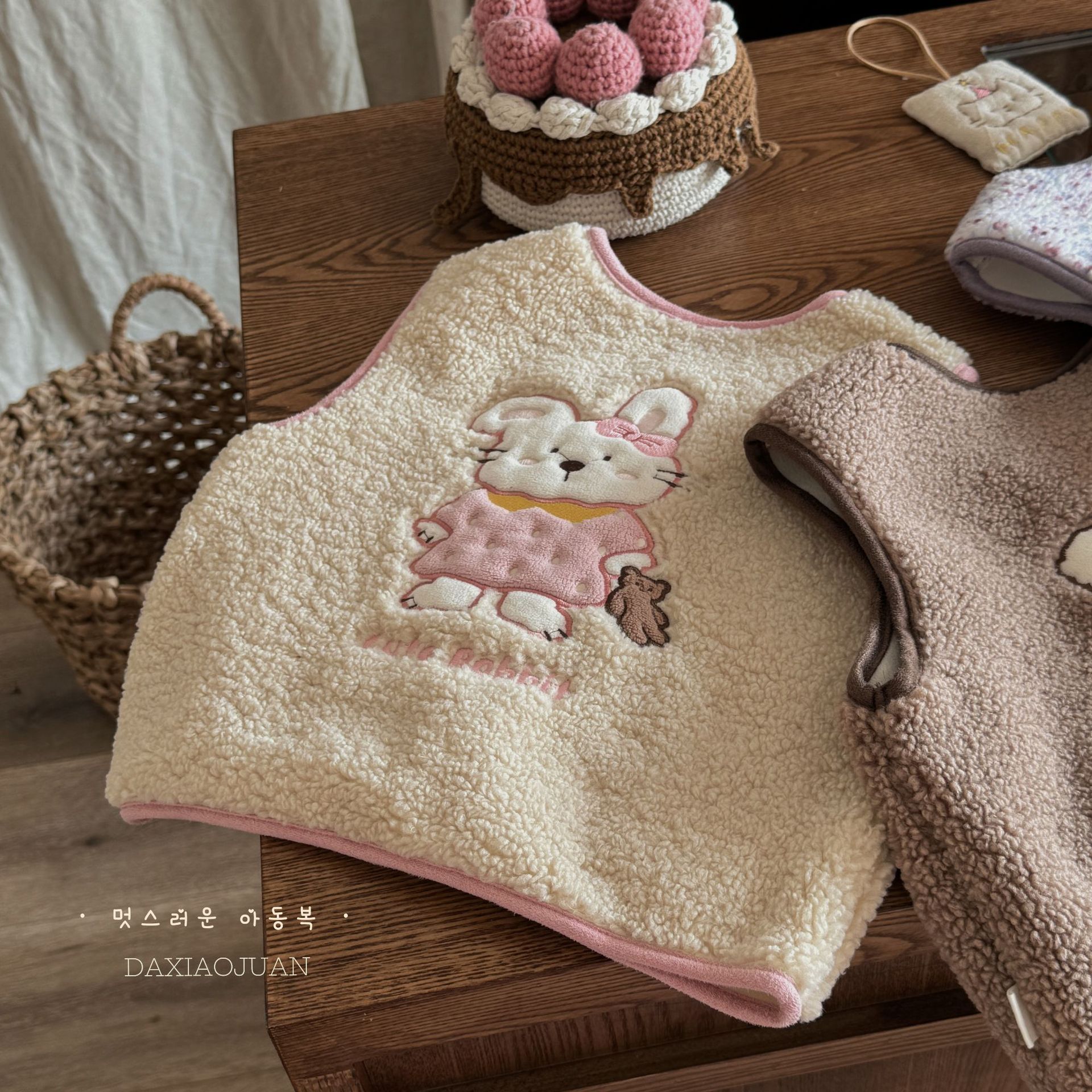 재고 사이즈 롤 24 가을과 겨울 어린이 봉제 자수 만화 벨벳 귀여운 기모 작은 조끼 착용 조끼 아기스토어 가기