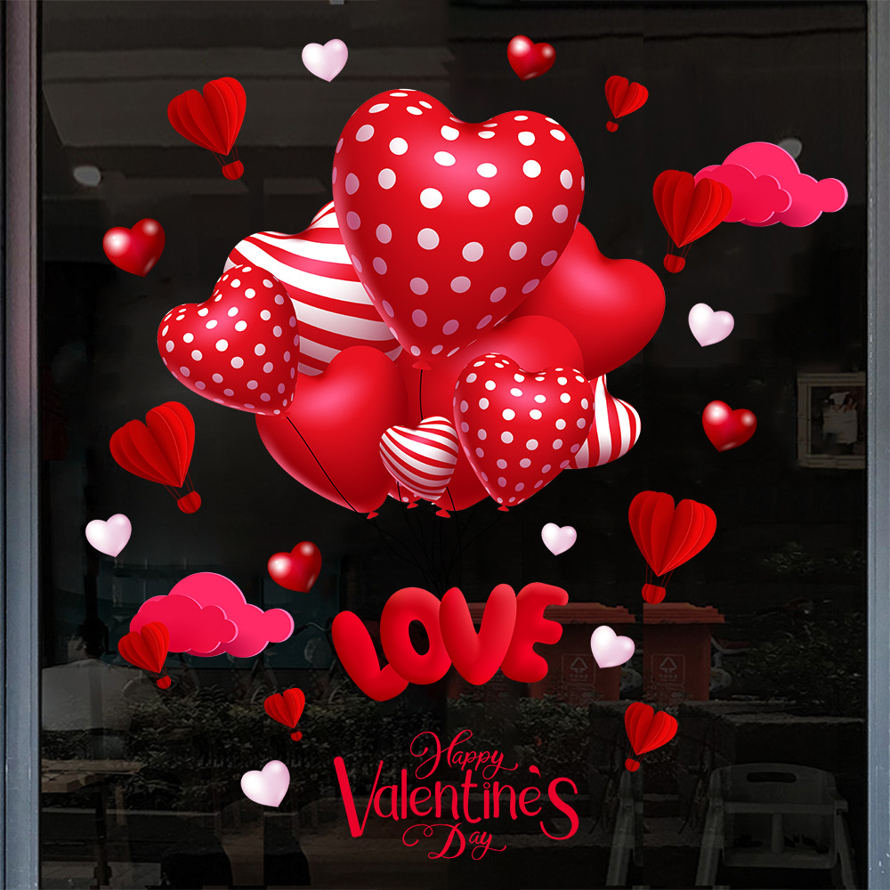 Yiyao JD4608 국경 Tanabata 발렌타인 데이 붉은 사랑 풍선 창 스티커 유리 이중 문 장식 정전기 스티커