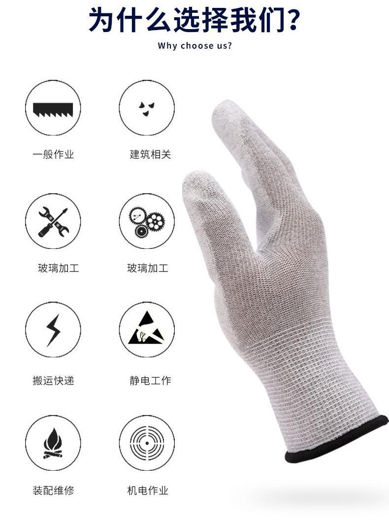 탄소섬유 코팅 손가락과 손바닥 정전기 방지 장갑, 전자공장 전문 작업장 설치 및 먼지 없는 작업
