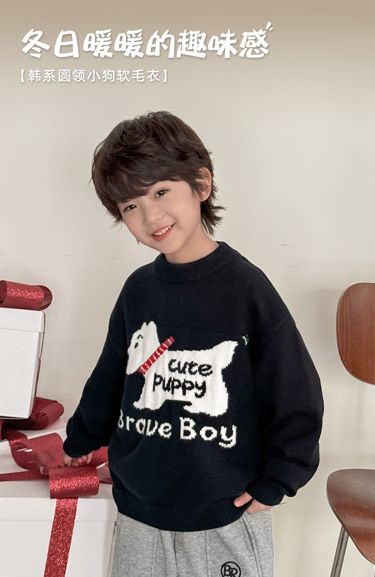 해마가족 남아 스웨터 아동 2025 겨울 신상 남자아이 니트 스웨터 큰아이 니트웨어 따뜻한 상의 트렌디스토어 가기