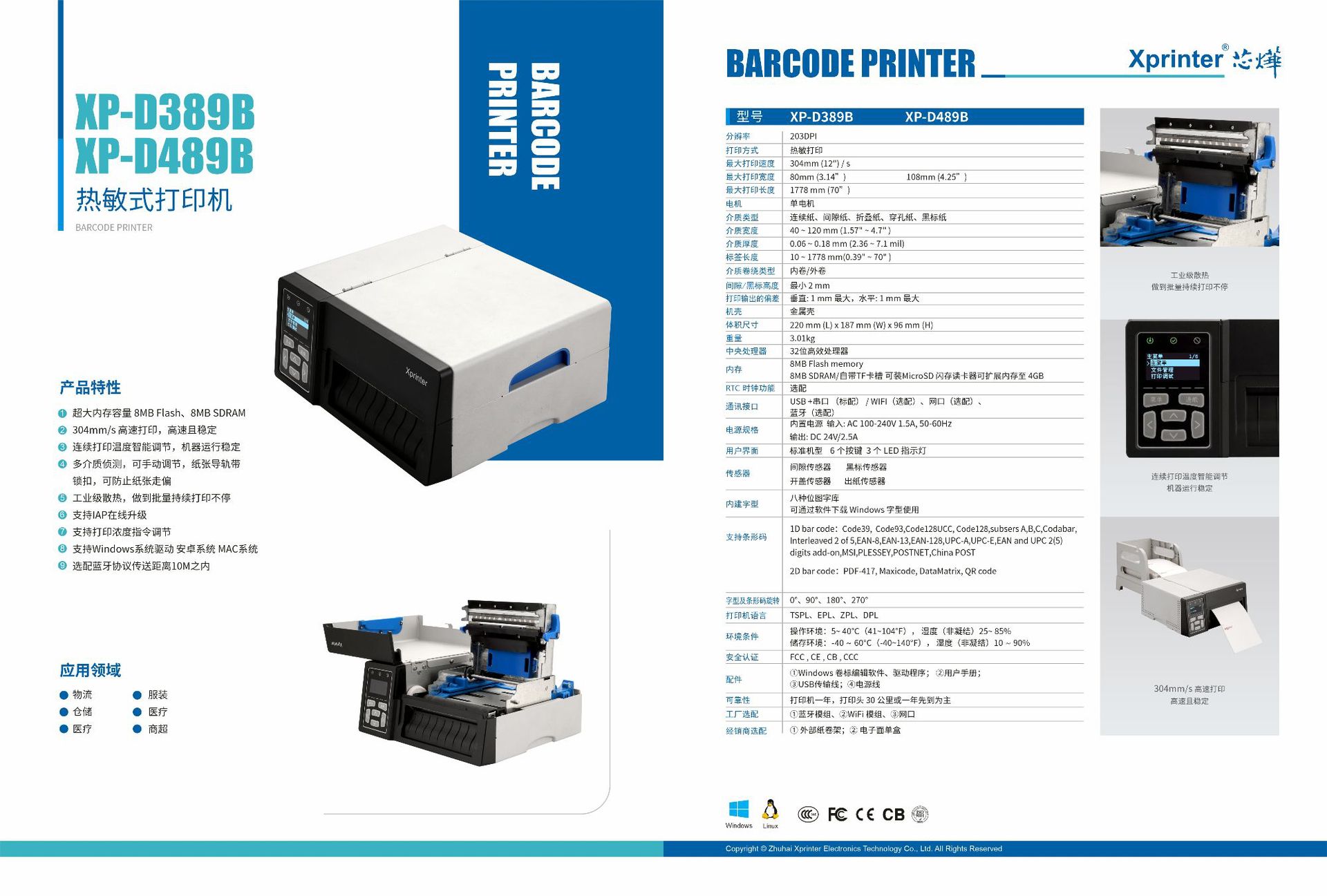 Xinye 489B 익스프레스 프린터 고속 전자 얼굴 단일 열 접착 산업용 바 코드 라벨 프린터