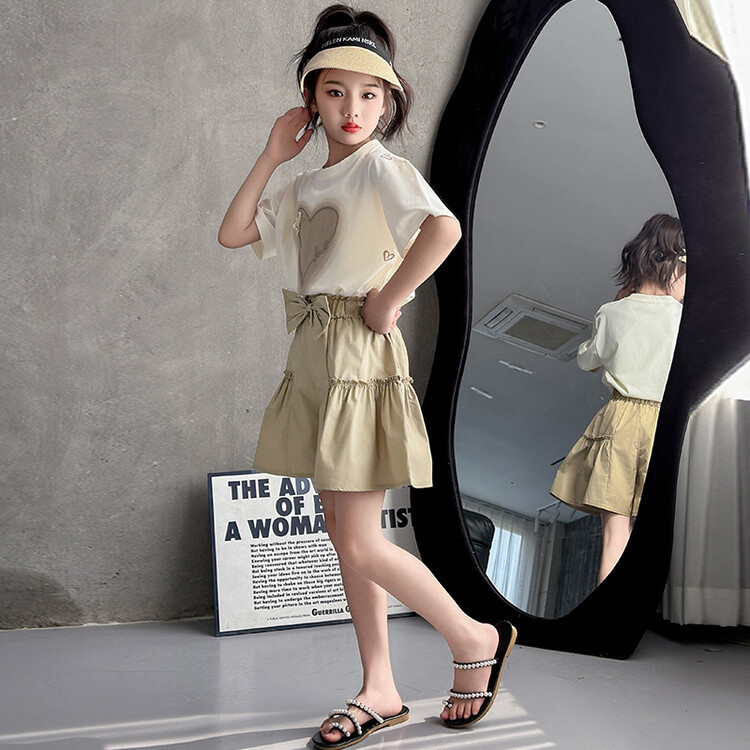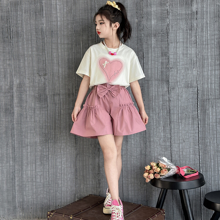러브 티셔츠 뉴 걸스 여름 반바지 2024 반팔 활 트렌디 자수 컬롯 투피스 세트