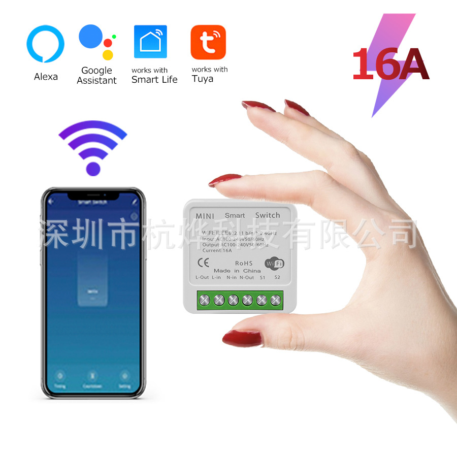 낙서 와이파이 음성 APP 타이밍 스마트 무선 스위치 싱글 오픈 더블 컨트롤 16A 미니 온-오프 스마트 스위치