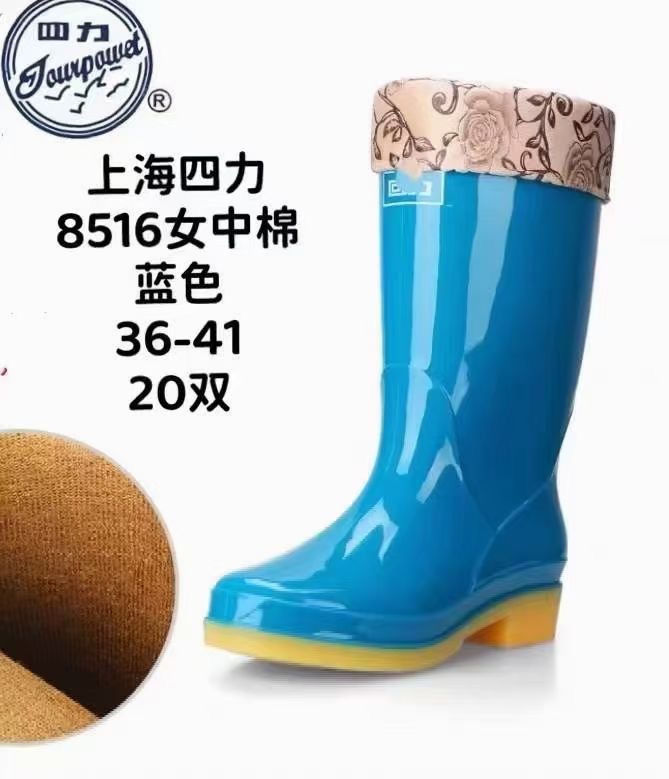 4 개의 힘 8516 여성면 패딩 미드 배럴 레인 부츠 오버 슈즈 워터 슈즈 방수 여성용 레인 부츠 신발 작업 신발 패션 장화스토어 가기