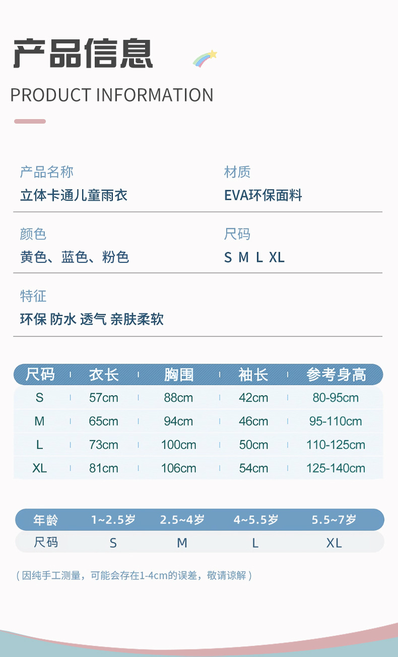 어린이 비옷 세트 어린이 귀여운 만화 속건성 중대형 어린이 EVA 방수 및 자외선 차단제 물 비옷스토어 가기