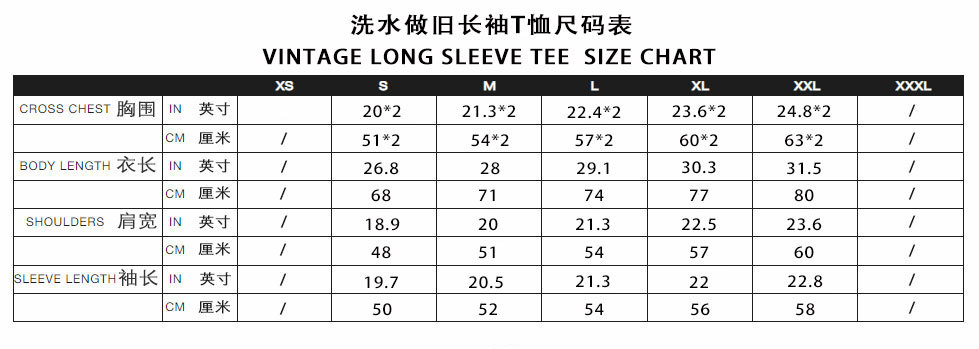 장기 주식 유럽과 미국의 패션 브랜드 VINTAGE T 셔츠 세척 물 오래 된 복고풍 긴 소매 티셔츠스토어 가기