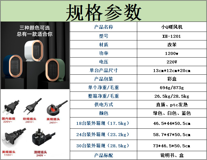 메이스터 1800W 가정용 히터 고출력 수직형 히터 PTC 가열 해외 무역용 전기 히터