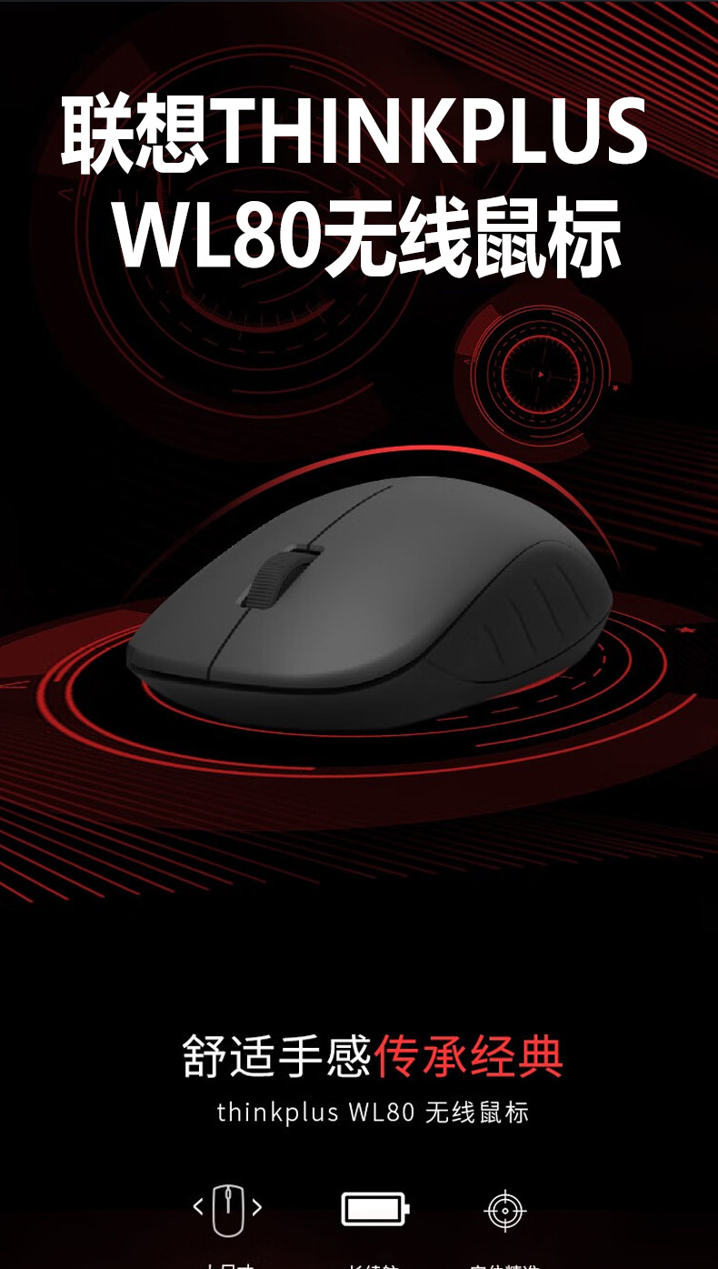 정품 thinkplus WL80 무선 마우스 노트북 데스크톱 컴퓨터 비즈니스 사무실 범용 컴퓨터 마우스스토어 가기