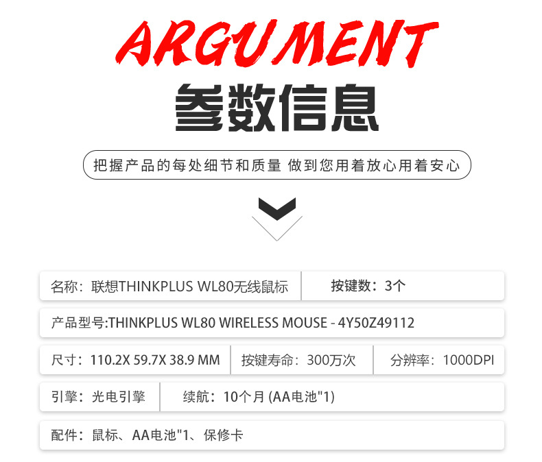 정품 thinkplus WL80 무선 마우스 노트북 데스크톱 컴퓨터 비즈니스 사무실 범용 컴퓨터 마우스