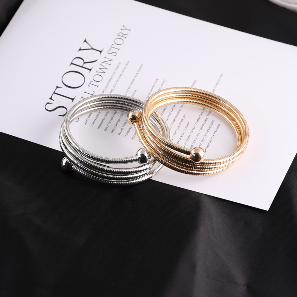 국경 간 유럽과 미국의 뱀 뼈 과장된 3 층 스프링 팔찌 diy 수제 기하학적 다층 팔찌 스레드 스택 팔 반지스토어 가기