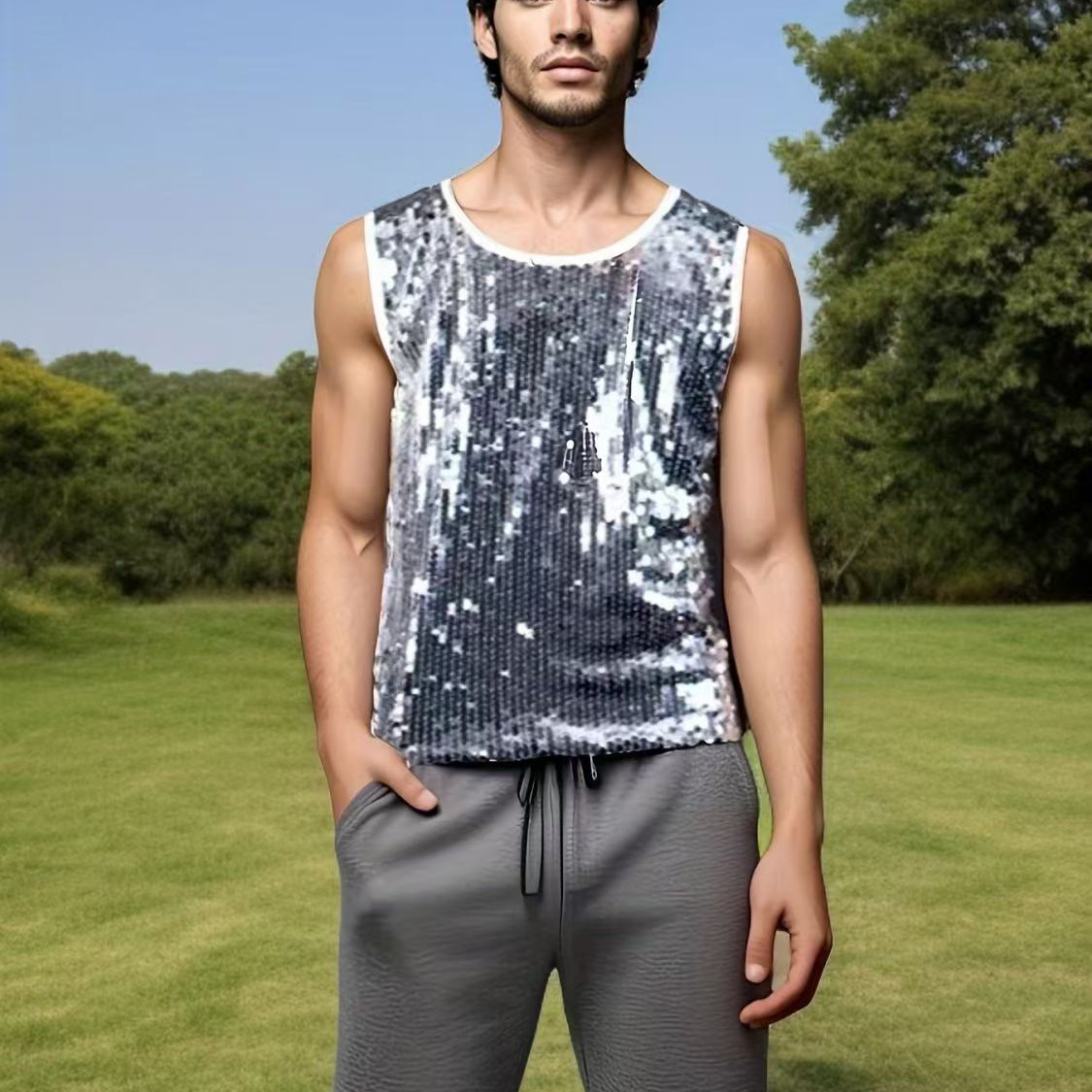 남성용 캐주얼 할로우 섹시 조끼 크로스 보더 남자 여름 스퀸 플래싱 짠 메쉬 민소매 조끼 탑