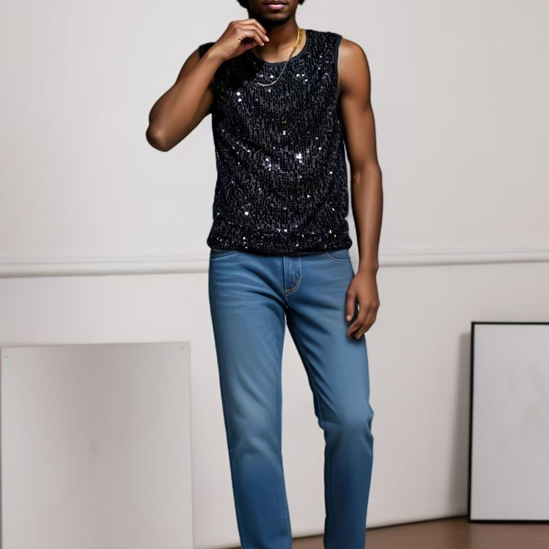 남성용 캐주얼 할로우 섹시 조끼 크로스 보더 남자 여름 스퀸 플래싱 짠 메쉬 민소매 조끼 탑스토어 가기