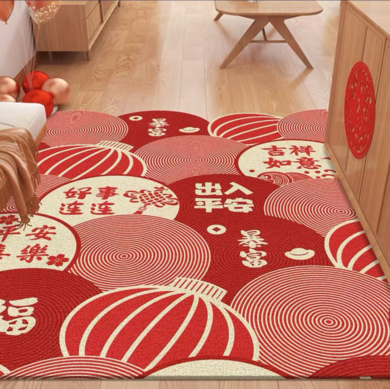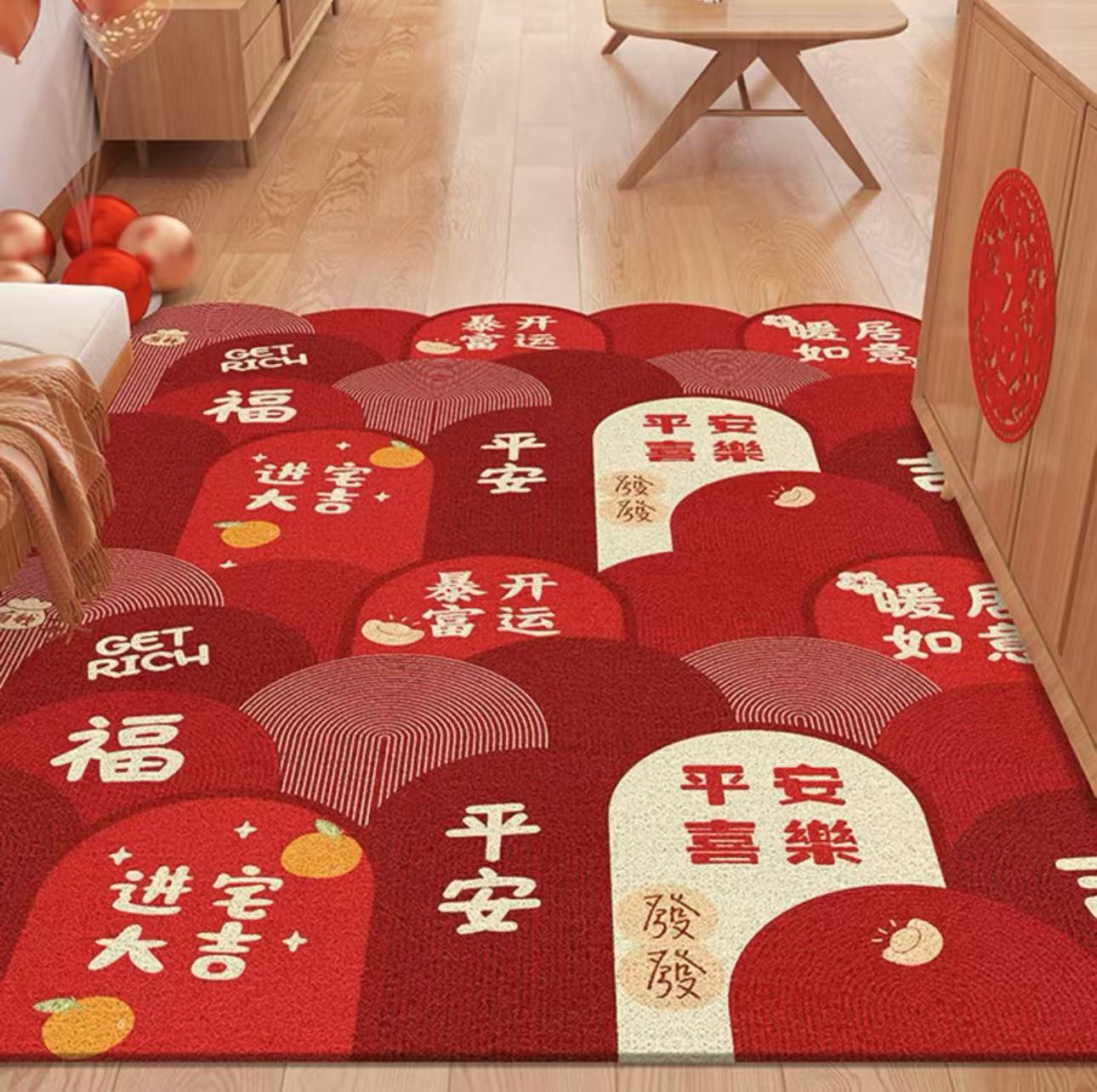 입구 바닥 매트 실크 링 출입구 바닥 매트 비 슬립 축제 레드 홈 입구 만화 집들이 카펫