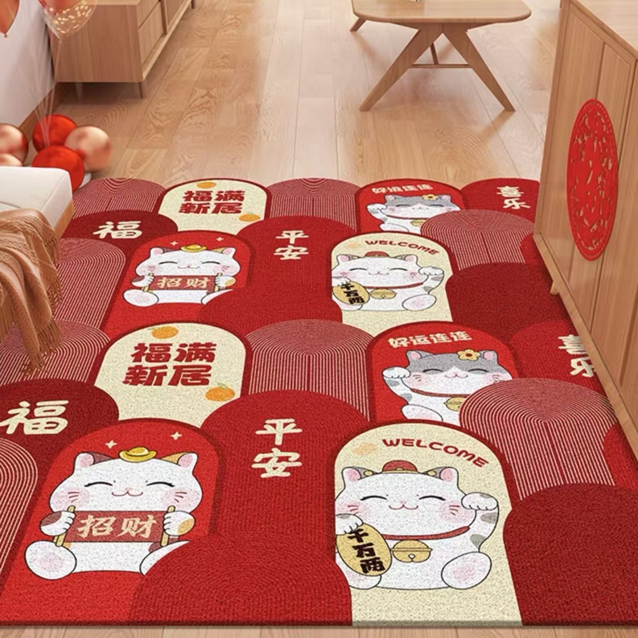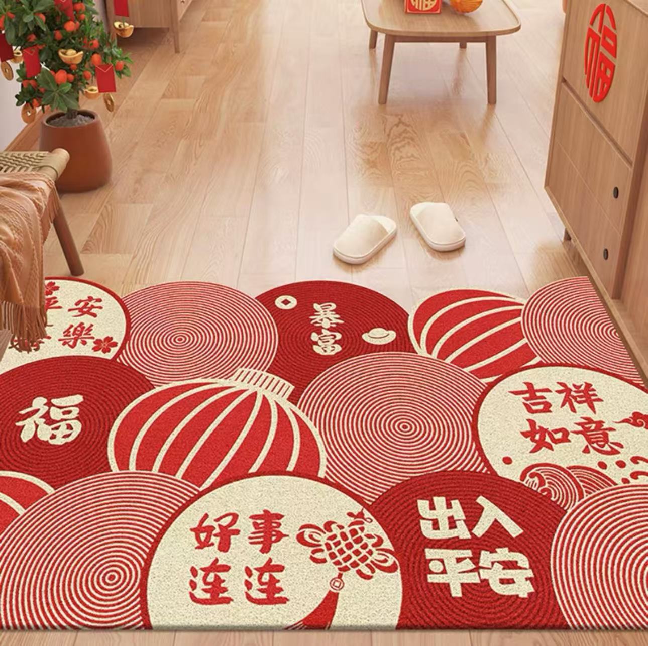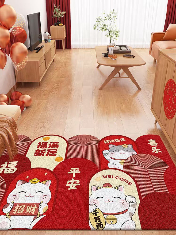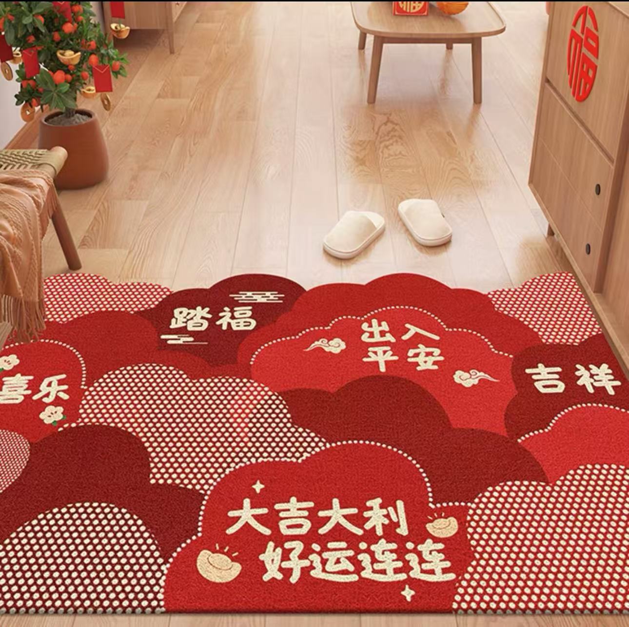 입구 바닥 매트 실크 링 출입구 바닥 매트 비 슬립 축제 레드 홈 입구 만화 집들이 카펫스토어 가기