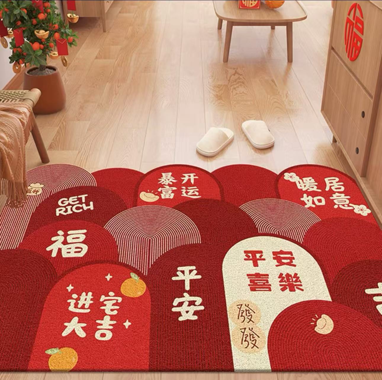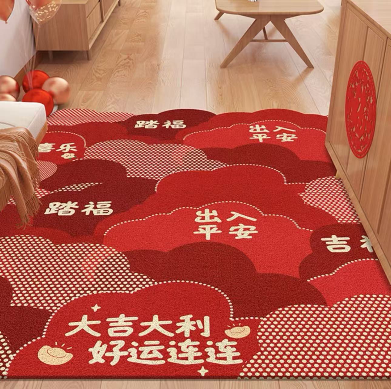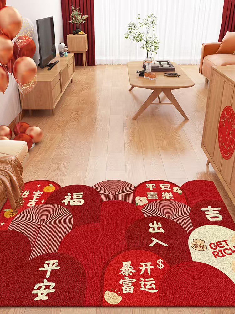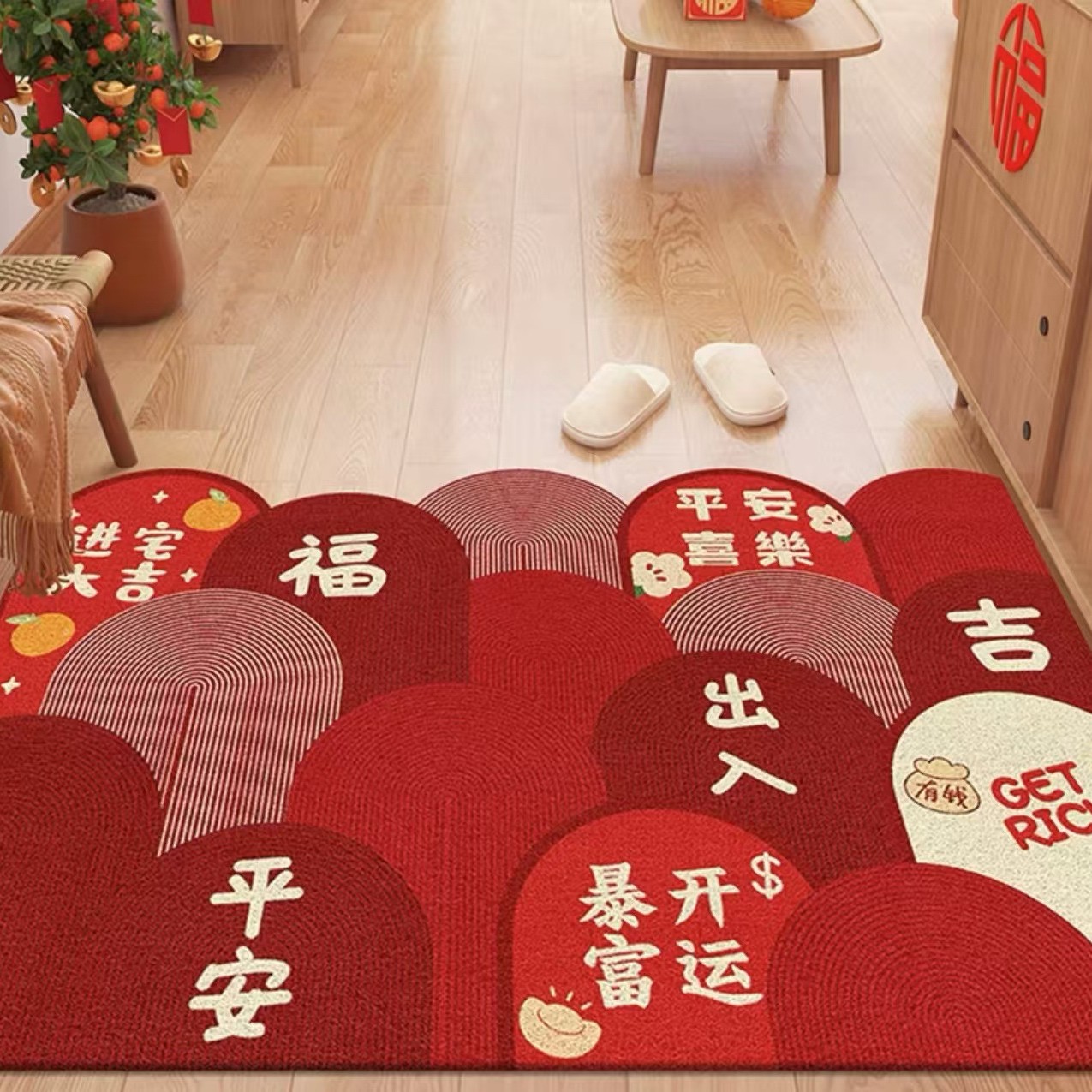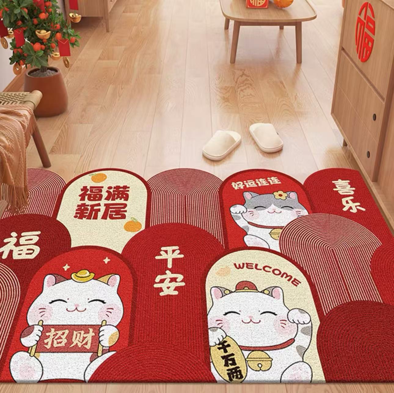 입구 바닥 매트 실크 링 출입구 바닥 매트 비 슬립 축제 레드 홈 입구 만화 집들이 카펫스토어 가기