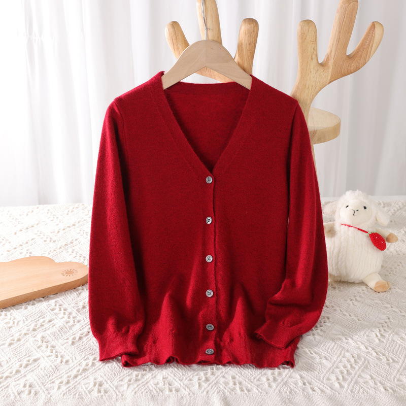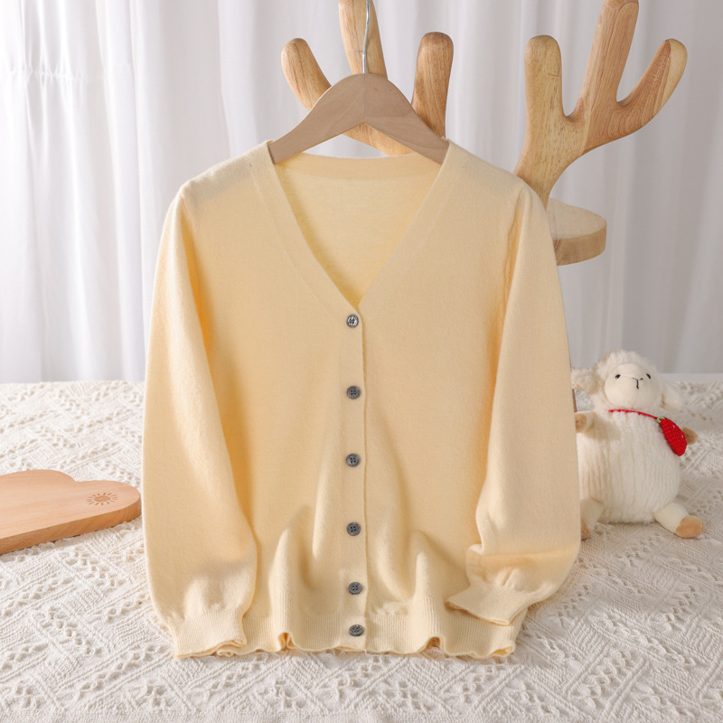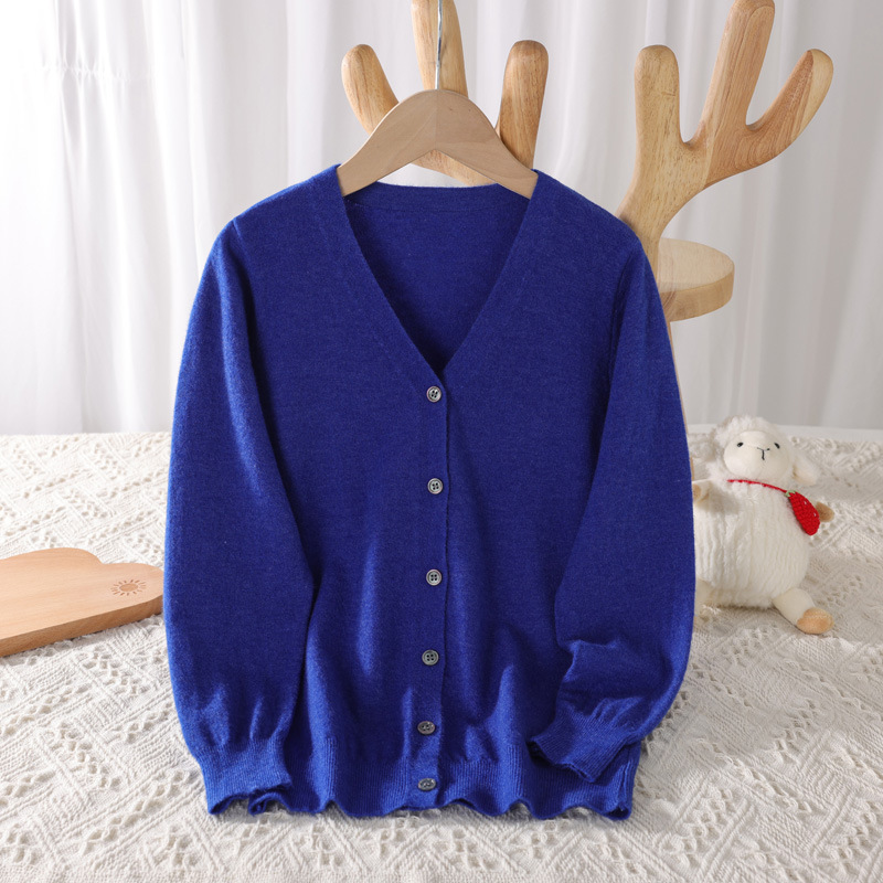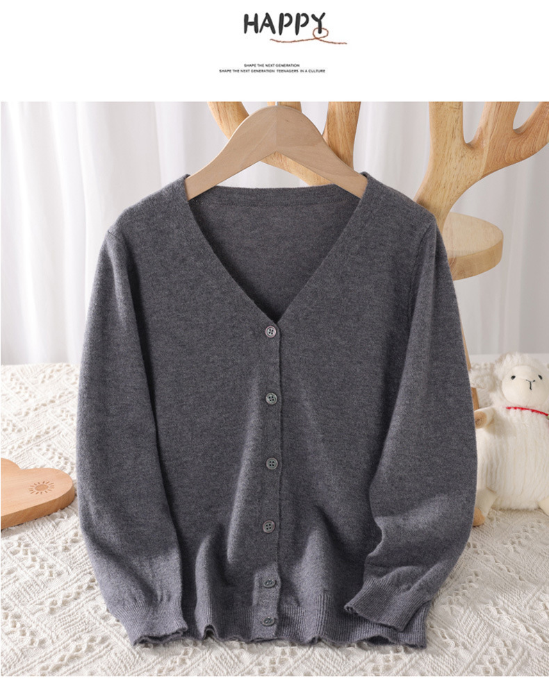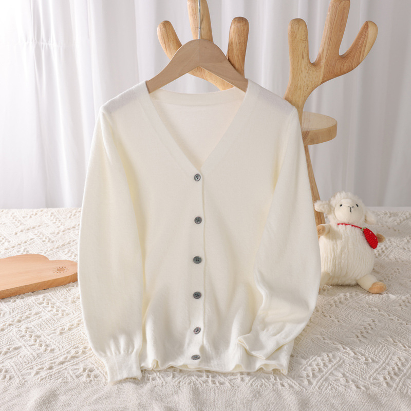 봄과 가을 대학 스타일 소녀의 V 넥 코트 화이트 어린이 스웨터 카디건 빅 보이 울 니트웨어스토어 가기
