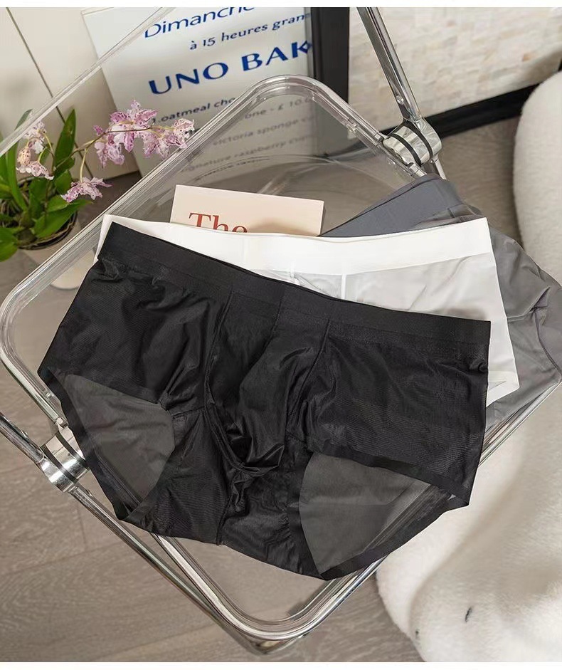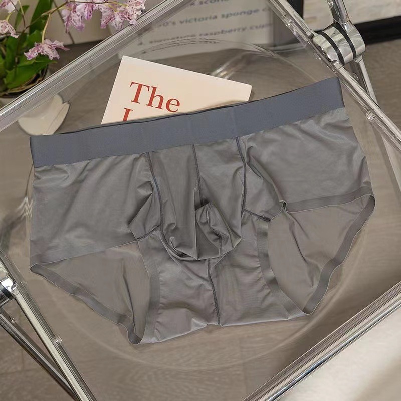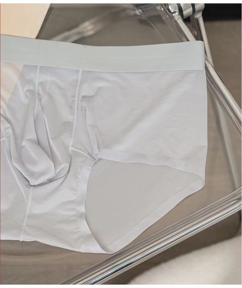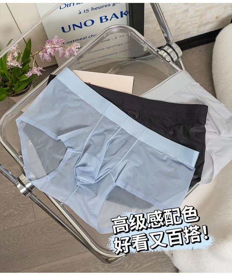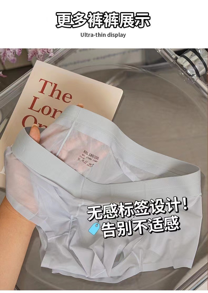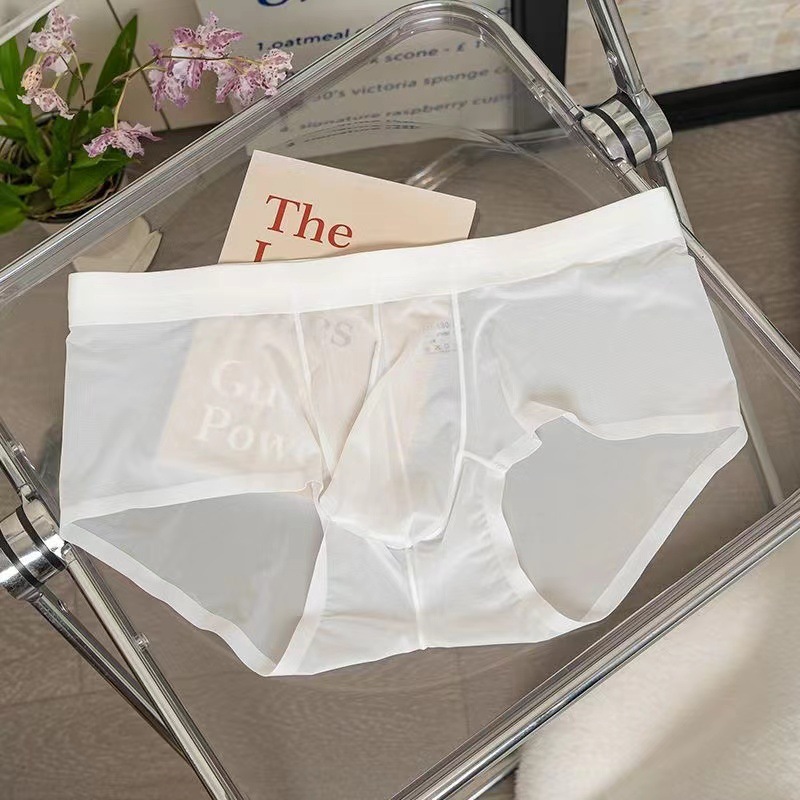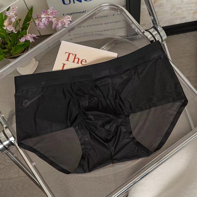 남성용 속옷 아이스 실크 초박형 빠른 건조 완전 투명 미드 웨이스트 여름 섹시 벌거 벗은 남성용 편안한 브리프