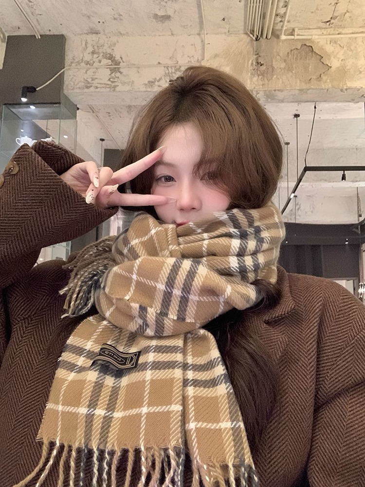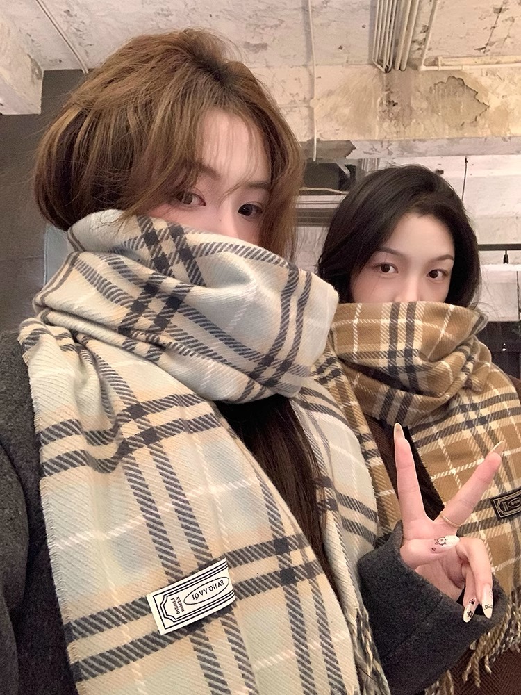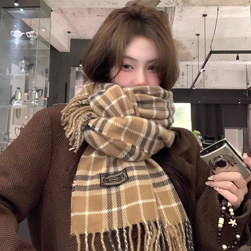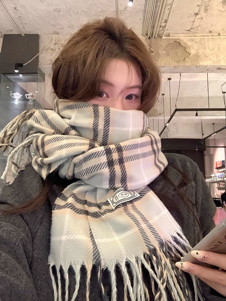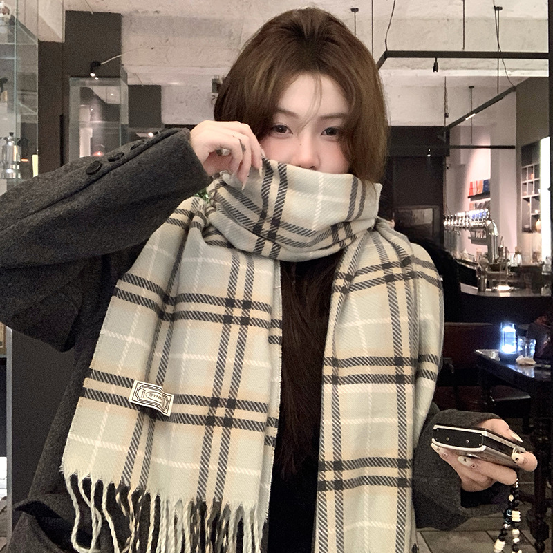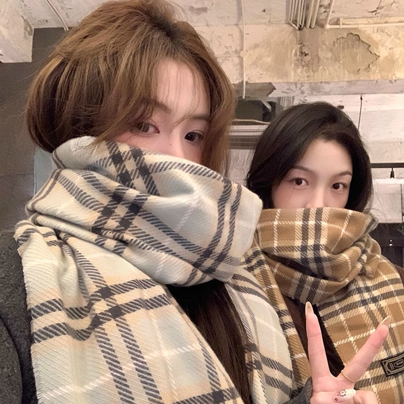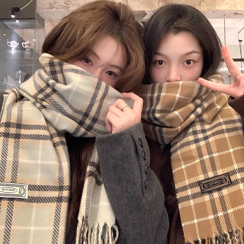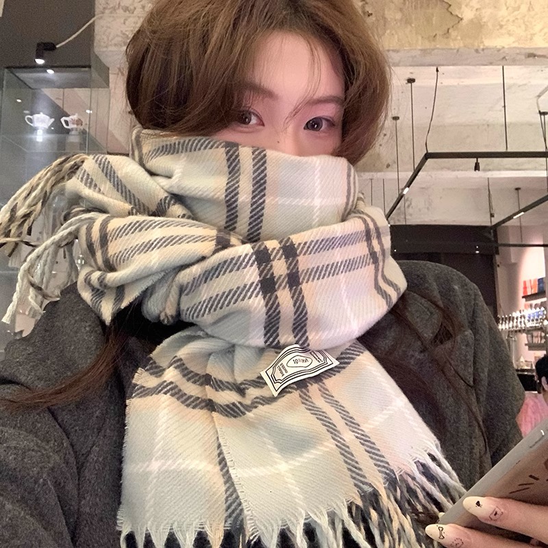 방풍 패션 겨울 분위기 센스 캐시미어 대형 체크 무늬 스카프 고급 센스 스카프 다목적 레트로 숄 한국 스타일스토어 가기