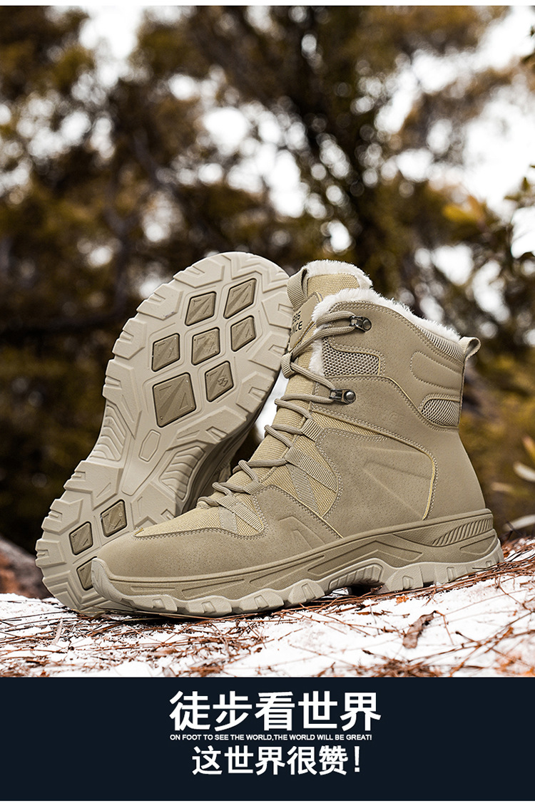 겨울 새로운 도착 플러스 사이즈 남성 신발 하이 탑 야외 커플 군인 전투 부츠 사막 등산 기모 따뜻한 모험 코튼 부츠스토어 가기
