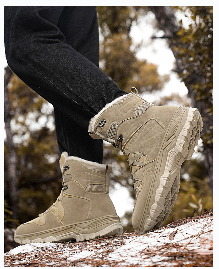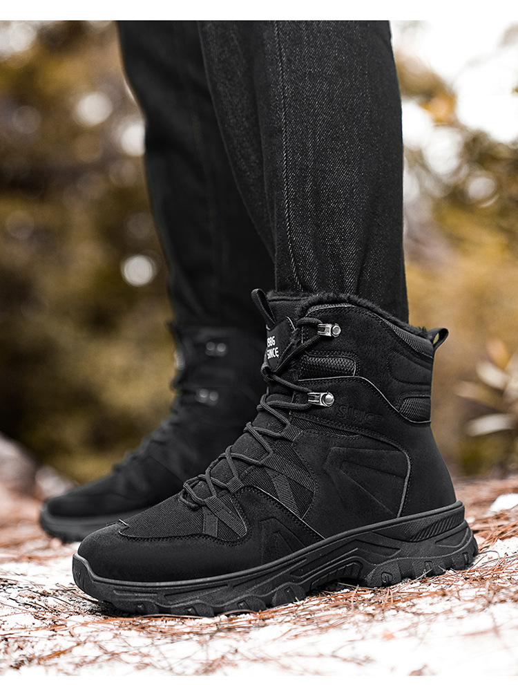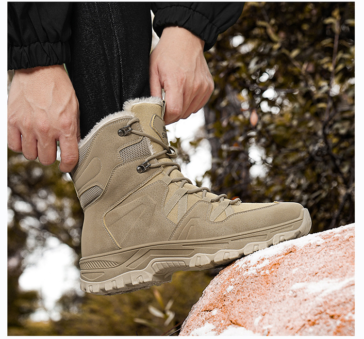 겨울 새로운 도착 플러스 사이즈 남성 신발 하이 탑 야외 커플 군인 전투 부츠 사막 등산 기모 따뜻한 모험 코튼 부츠