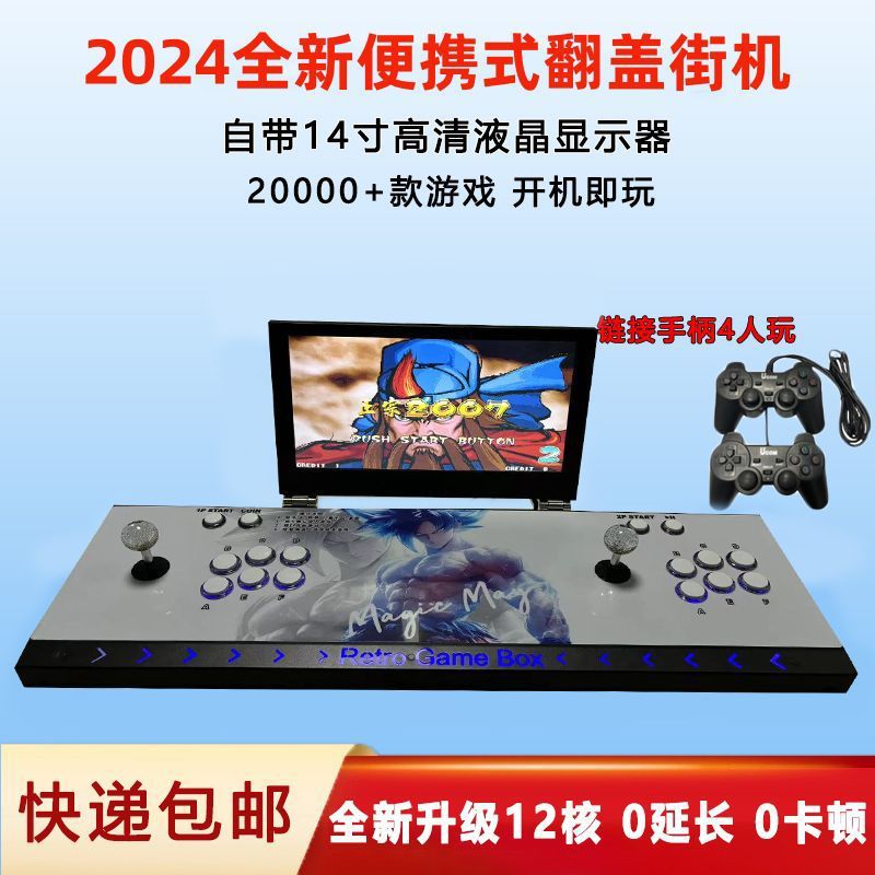 새로운 판도라 게임기 14 인치 대형 스크린 휴대용 플립 더블 로커 아케이드 향수 클래식 올인원 기계스토어 가기