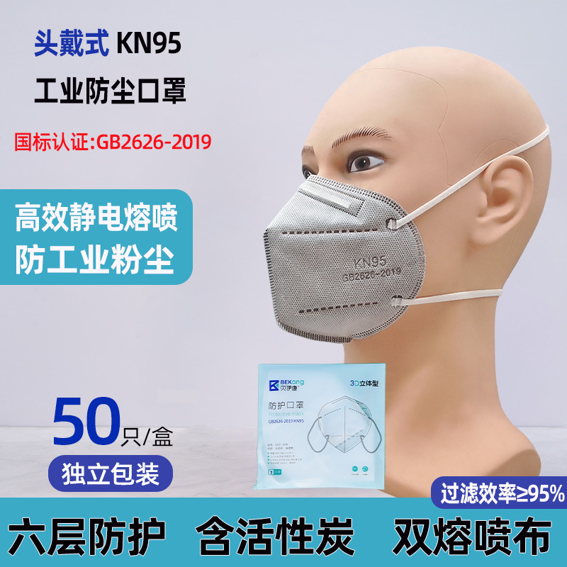 头戴式KN95防尘口罩加海绵条工业专用防粉尘口罩打磨活性炭面罩