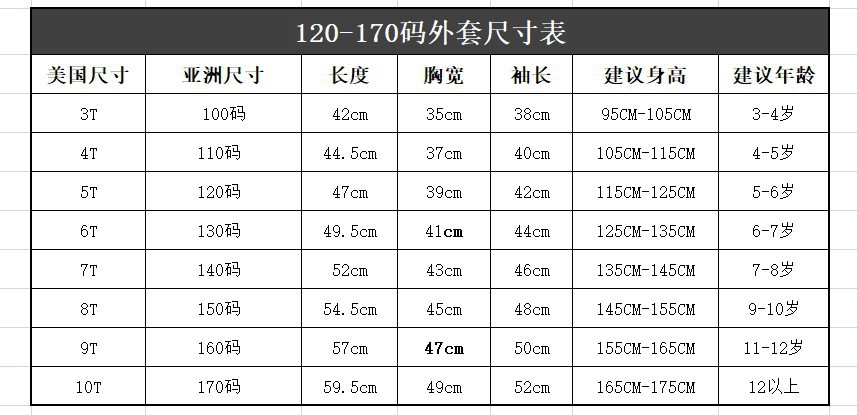 【产品尺码】100 110 120 130 140 150 160 170