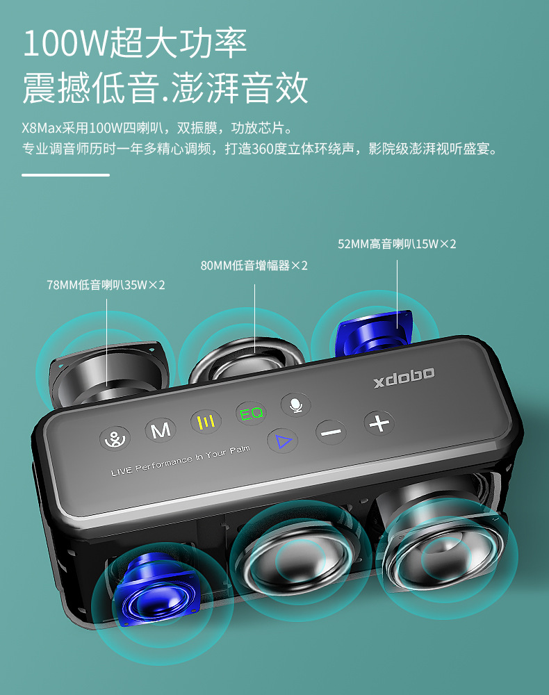 XDOBO 블루투스 스피커 X8 MAX 100W 고출력 야외 휴대용 TWS 무선 스피커