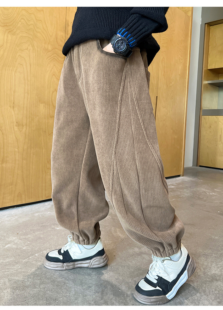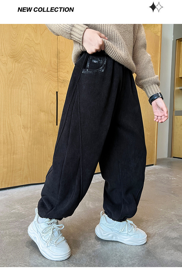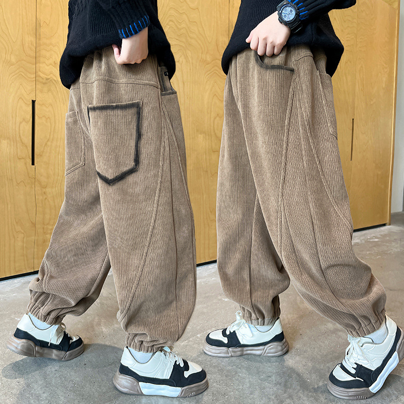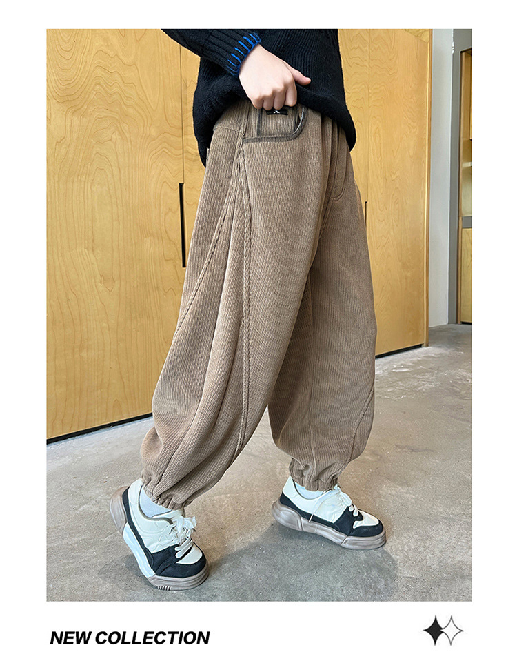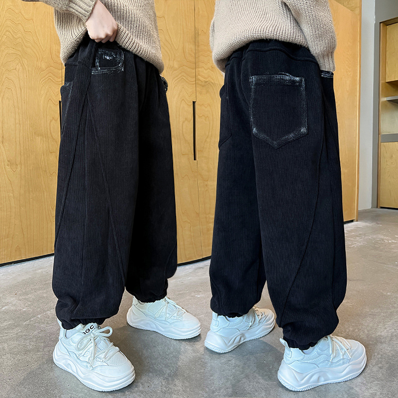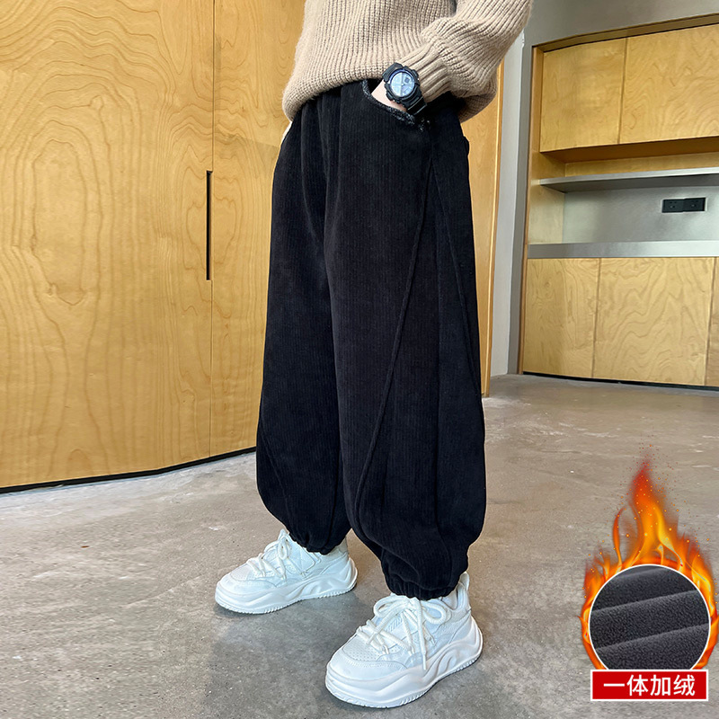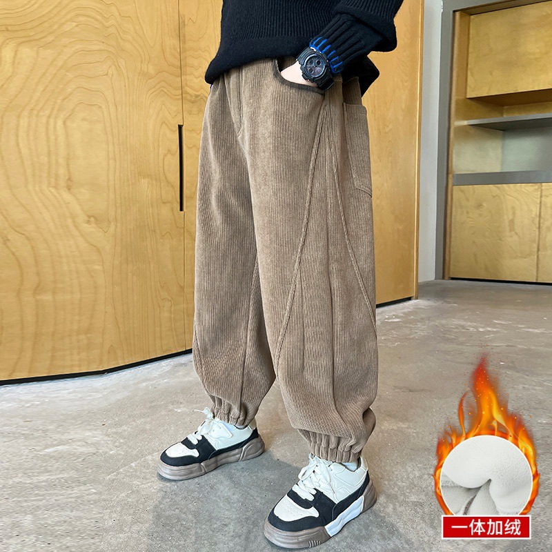 남아용 기모 바지 가을 겨울 셔링 바지 2025 중대형 아동 캐주얼 바지 루즈핏 아동 가을 두꺼운 보온 바지