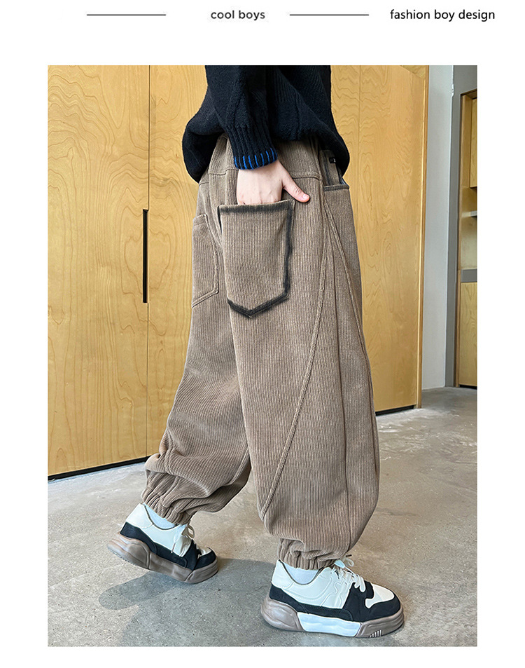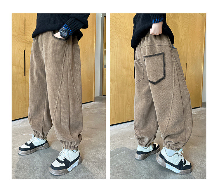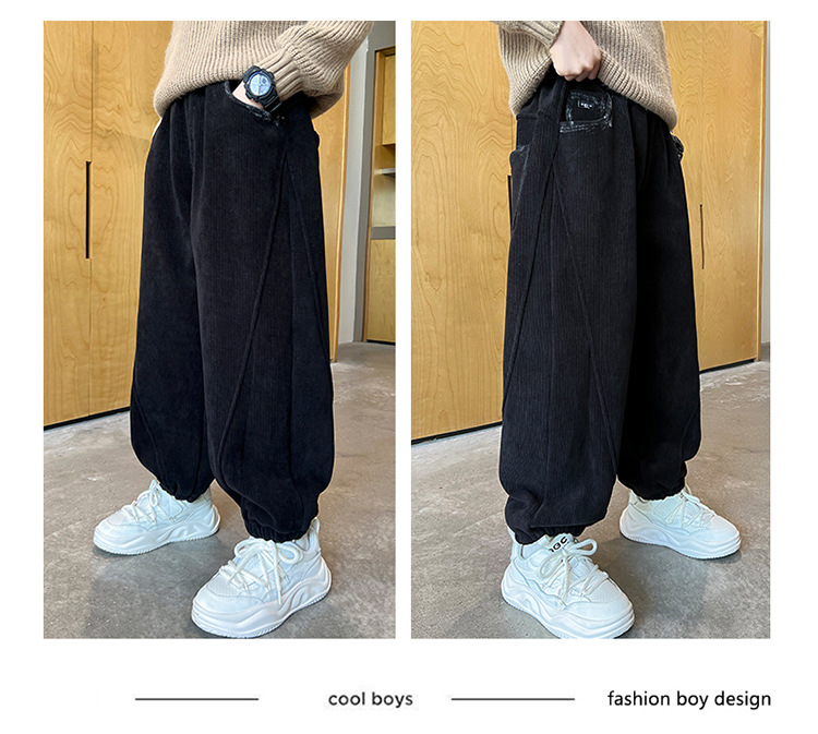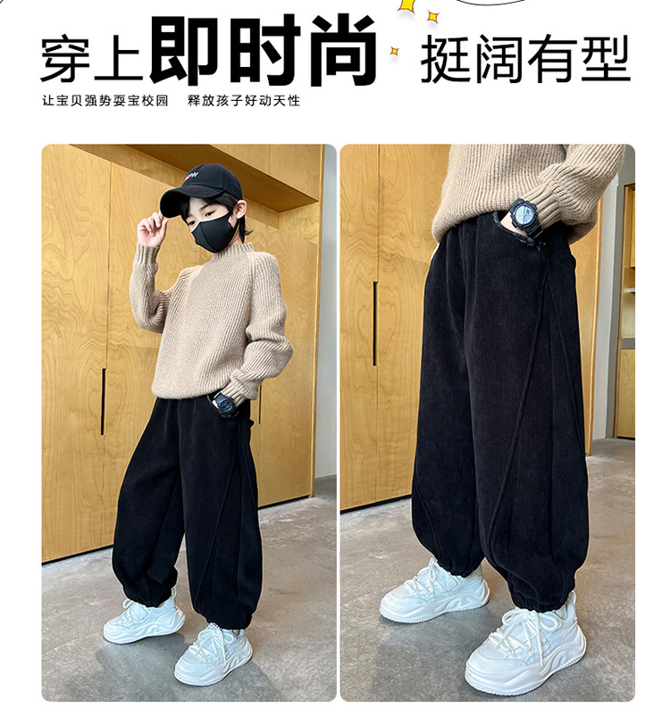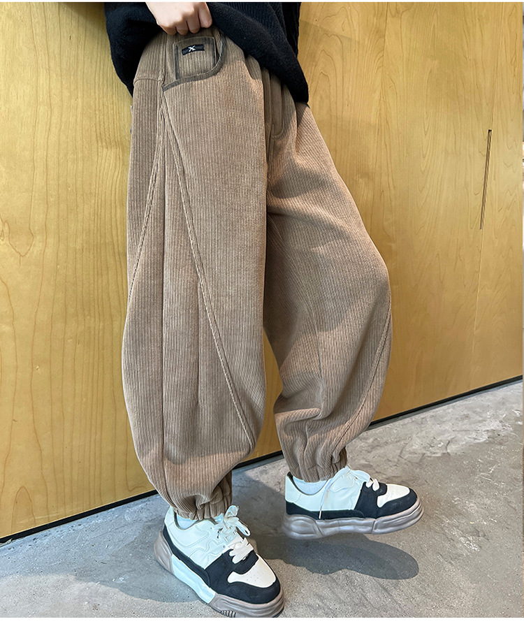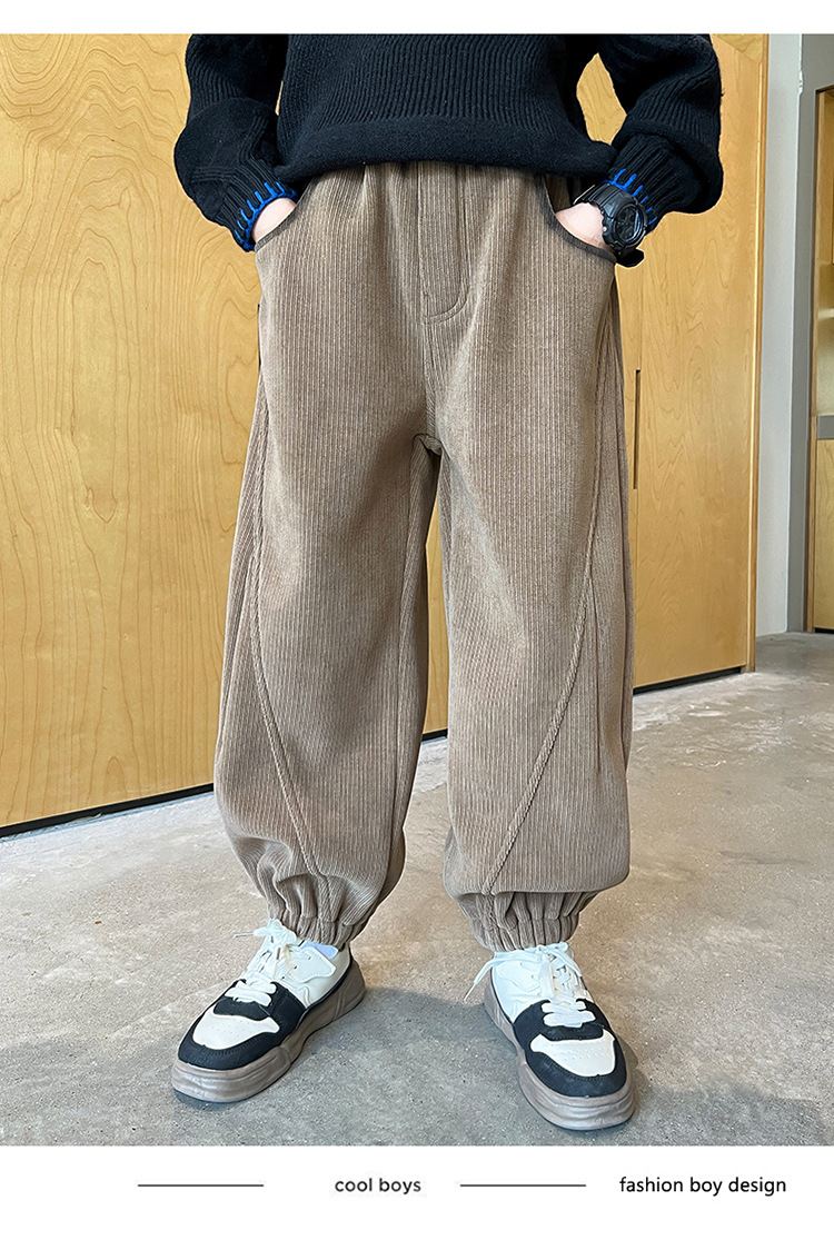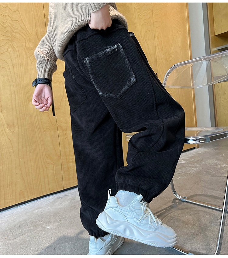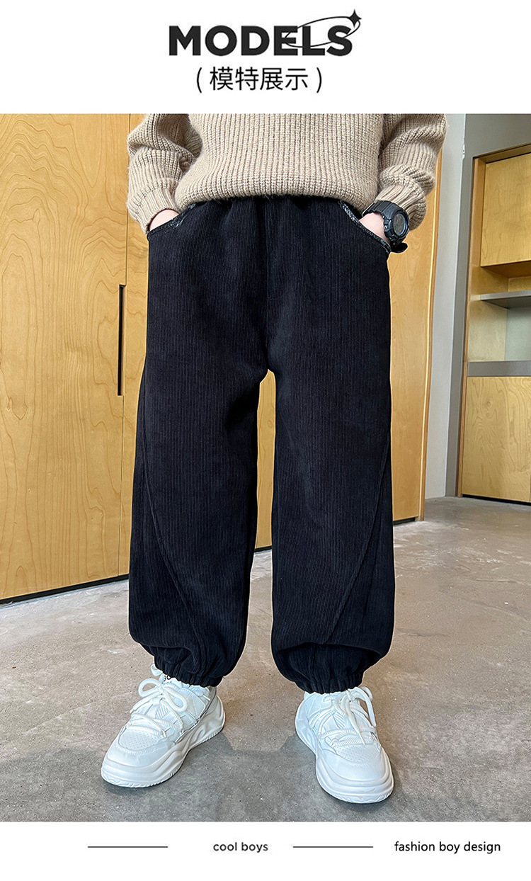 남아용 기모 바지 가을 겨울 셔링 바지 2025 중대형 아동 캐주얼 바지 루즈핏 아동 가을 두꺼운 보온 바지