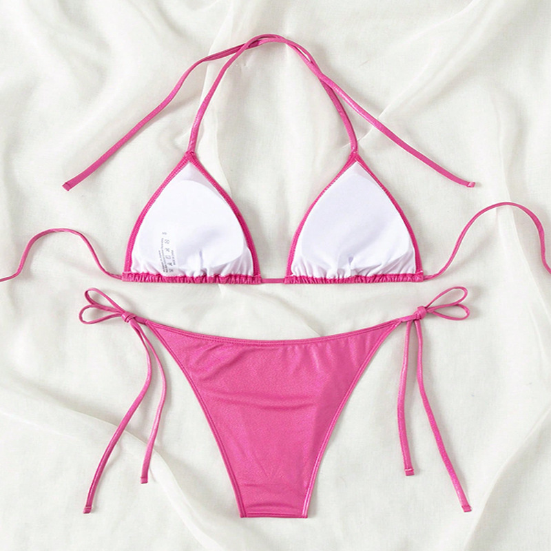 2025년 신상품 아마존 유럽 및 미국 단색 끈 비키니 섹시한 비치웨어 여성용 분리형 수영복스토어 가기