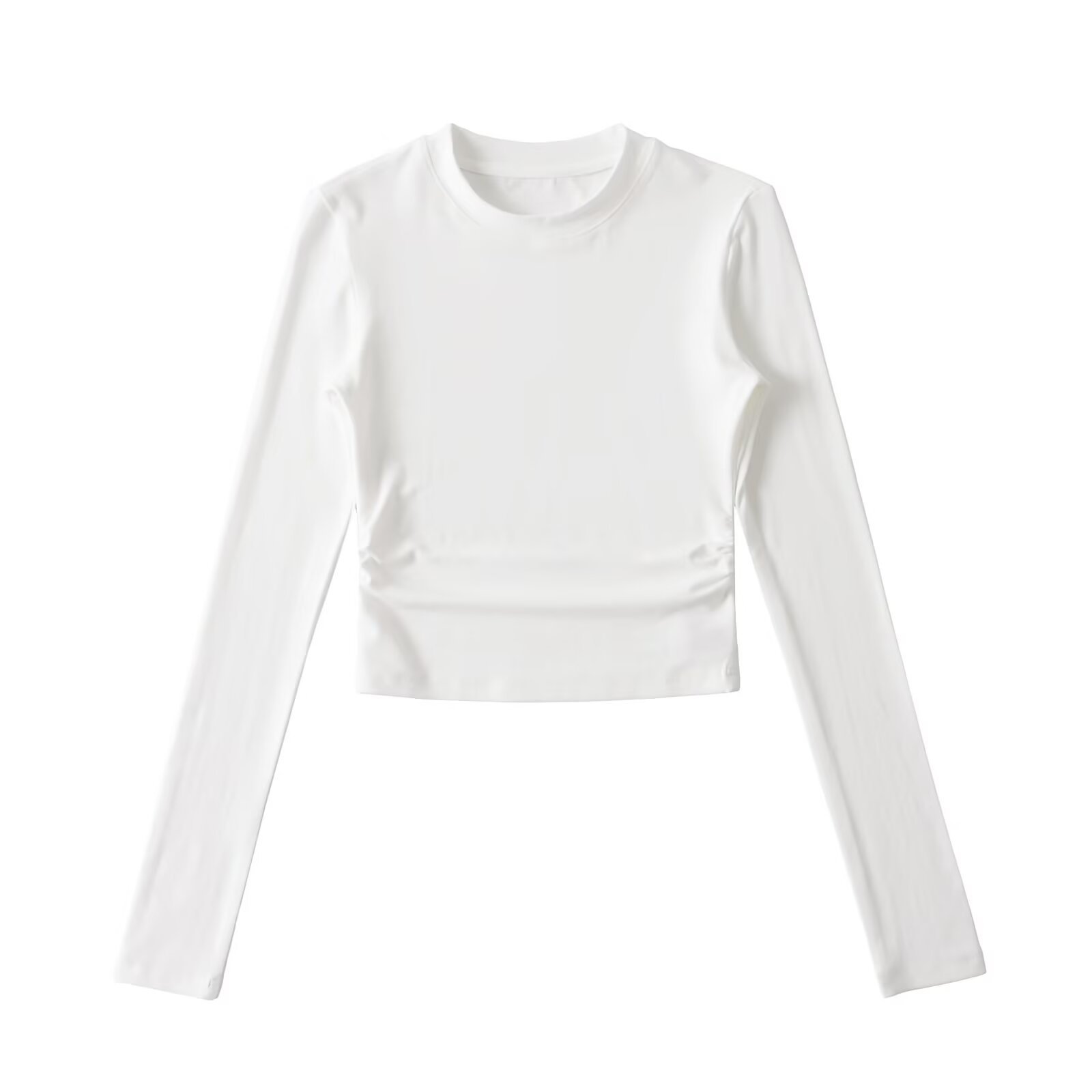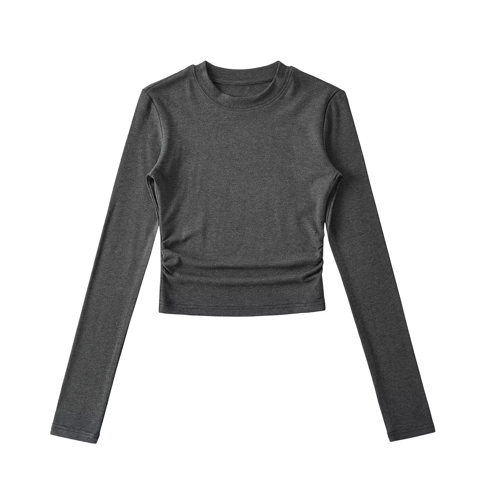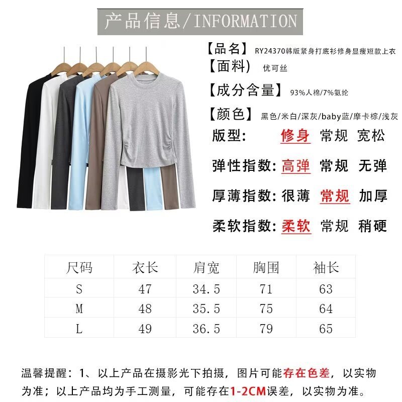 유럽과 미국 스타일의 초가을 새로운 작은 둥근 목 긴 소매 탄성 타이트한 바닥 티셔츠 슬림 핏 얇은 올 매치 쇼트 탑