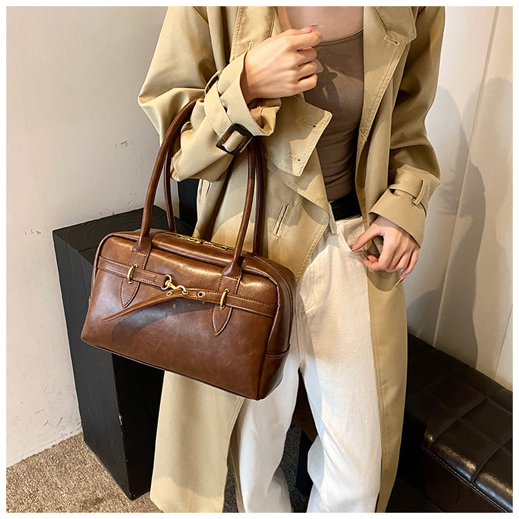 레트로 대용량 겨드랑이 가방 여성 2025 새로운 봄, 여름 숄더 백 휴대용 통근 보스턴 베개 가방스토어 가기