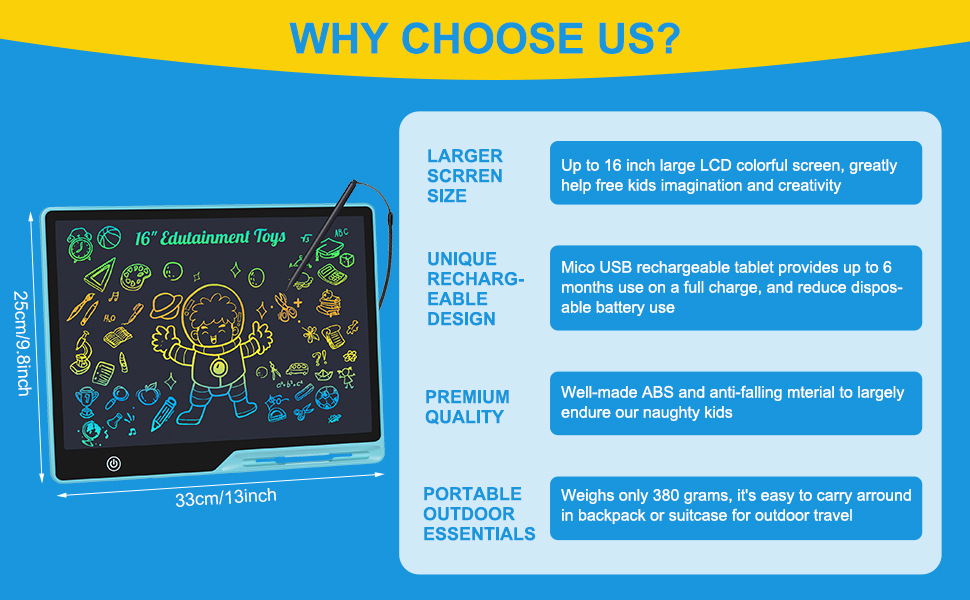 아마존의 새로운 충전식 16inch 어린이용 LCD 드로잉 보드 LCD 필기 보드 도매 제조업체 컬러 스크린스토어 가기