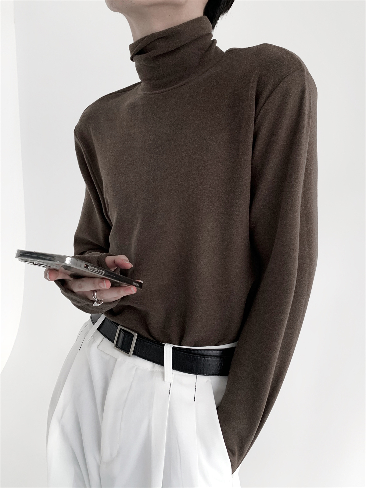 [팩토리 아울렛] 부드러운 조커 높은 목베이스 셔츠 남성 하이 엔드 가을 및 겨울 새로운 단색 긴 소매 티셔츠 트렌디스토어 가기