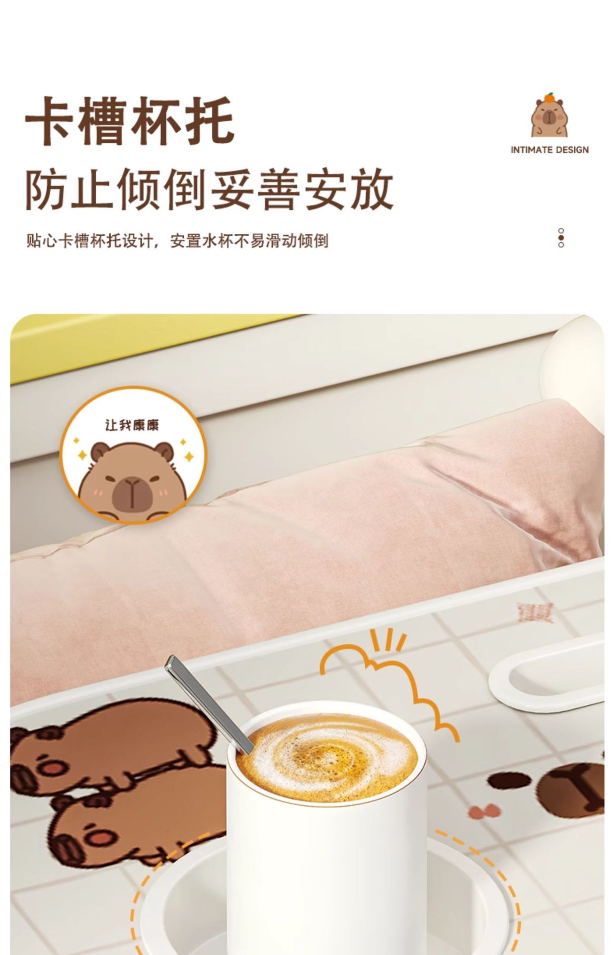 • 따뜻한 흰색 [미끄럼 방지 테이블 다리] 컵 홀더 + 카드 슬롯