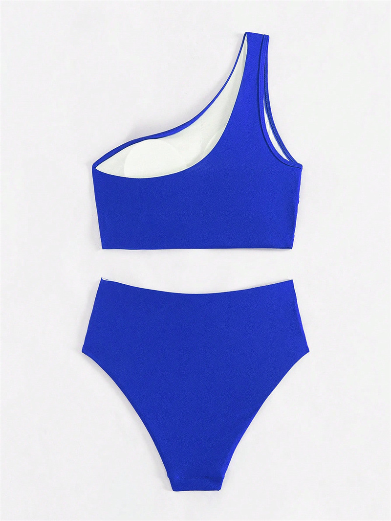 2025 새로운 유럽과 미국의 솔리드 컬러 플리트 수영복 여성용 섹시한 어깨 비키니 아마존 비키니스토어 가기