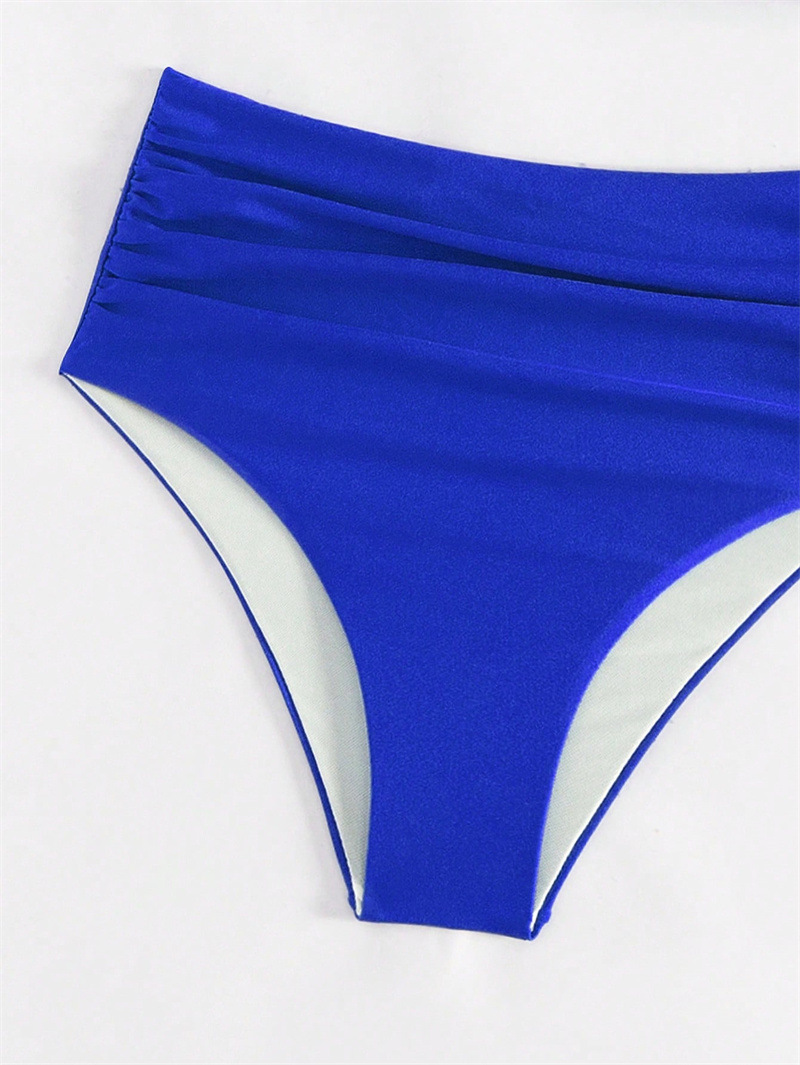 2025 새로운 유럽과 미국의 솔리드 컬러 플리트 수영복 여성용 섹시한 어깨 비키니 아마존 비키니