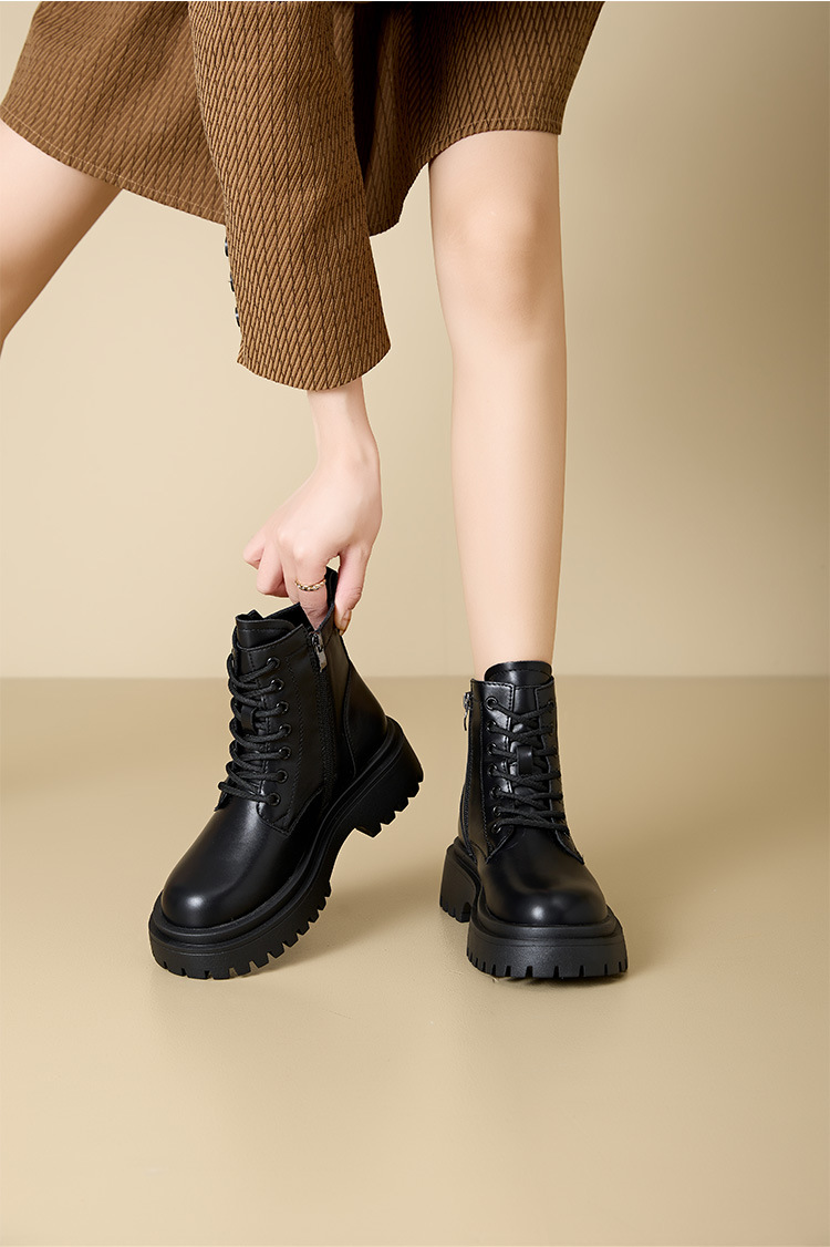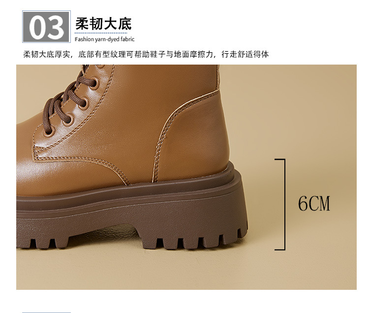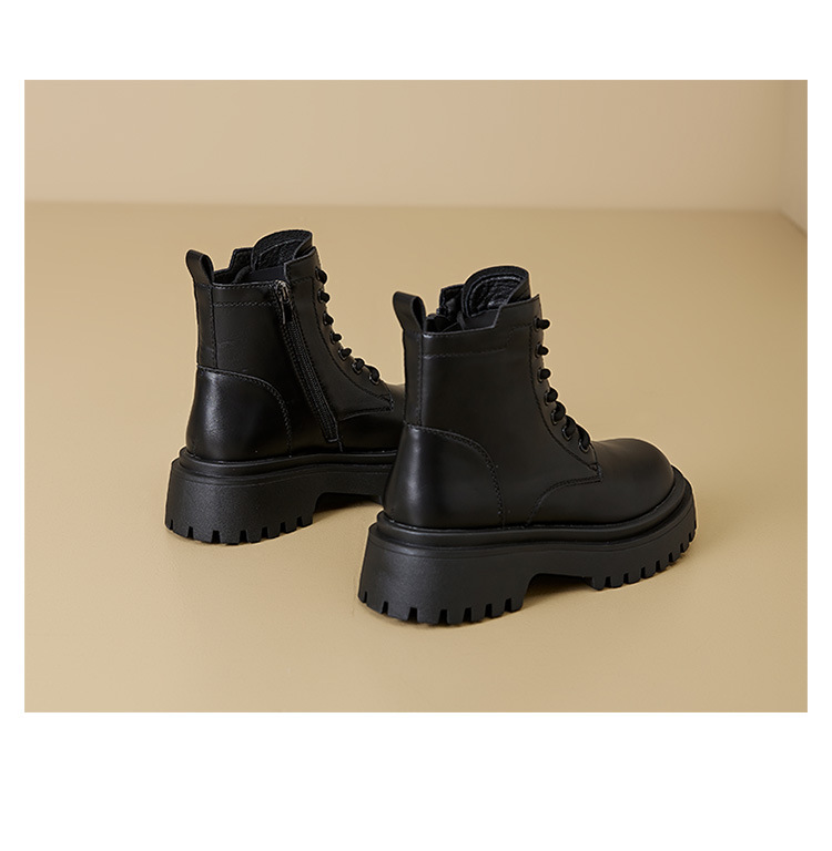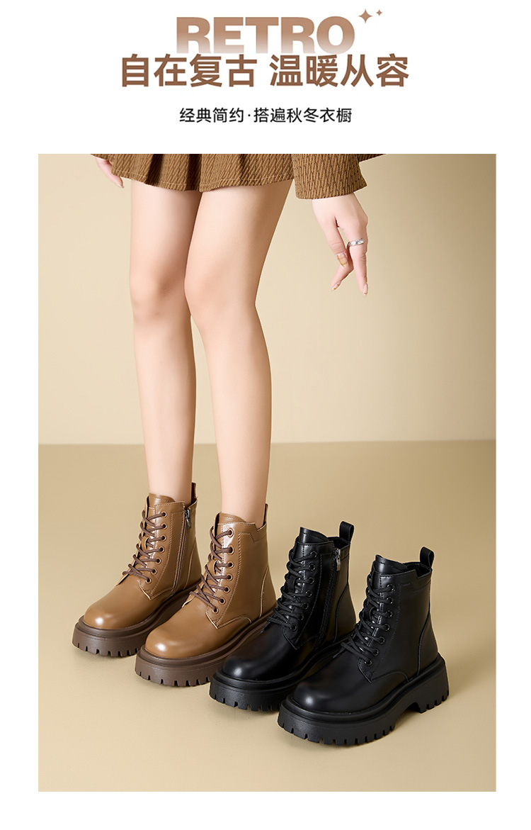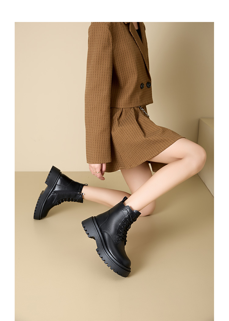 여성을위한 정품 가죽 6CM 두꺼운 밑창 마틴 부츠 2025 새로운 영국 스타일 싱글 부츠 가을, 겨울 벨벳 짧은 부츠 유행 스타일스토어 가기