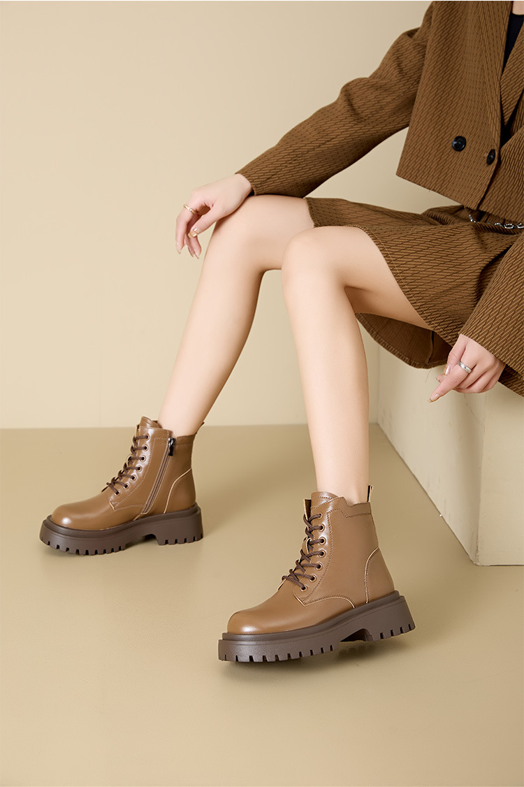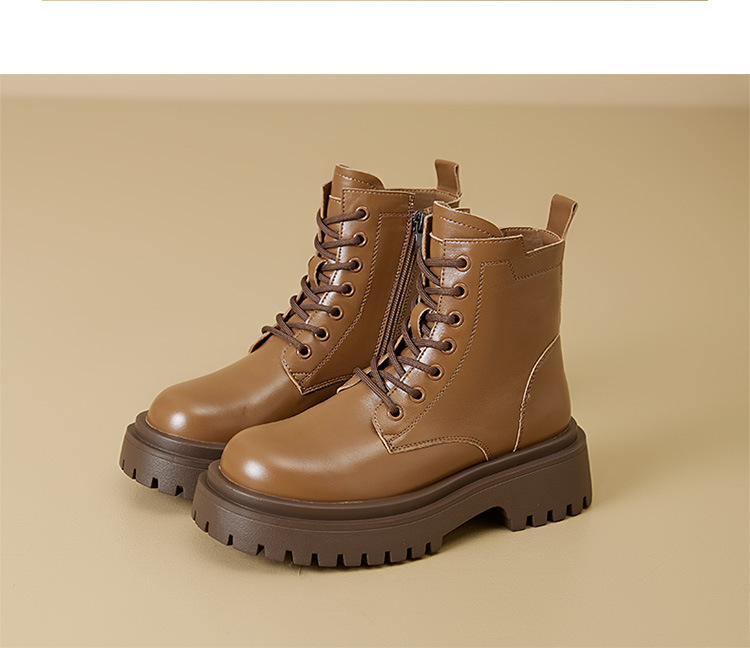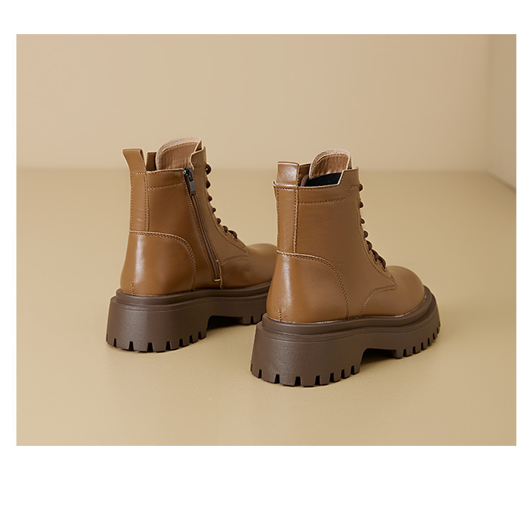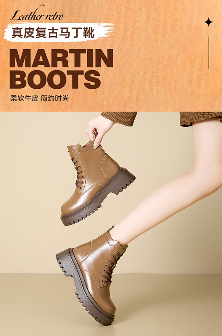 여성을위한 정품 가죽 6CM 두꺼운 밑창 마틴 부츠 2025 새로운 영국 스타일 싱글 부츠 가을, 겨울 벨벳 짧은 부츠 유행 스타일