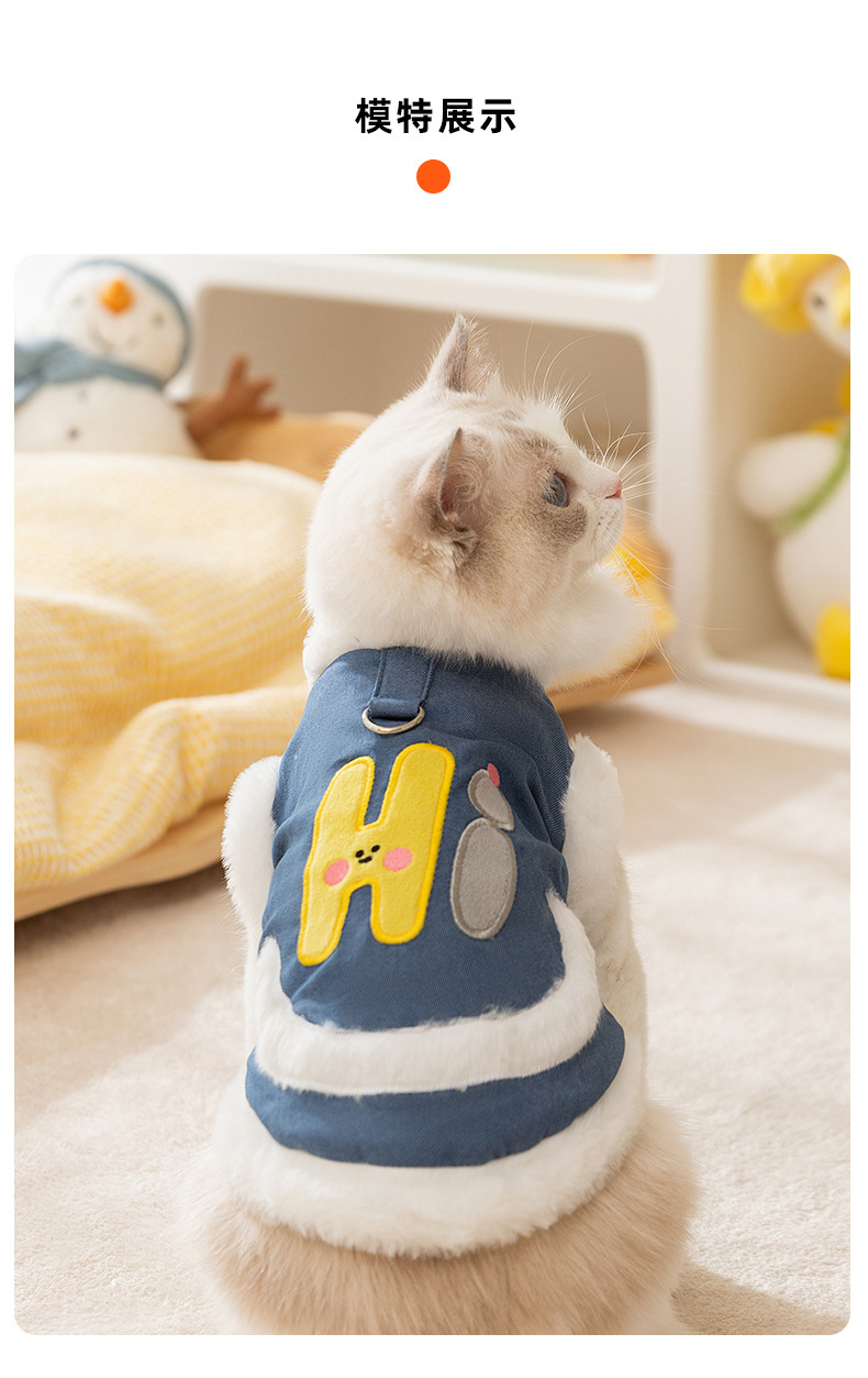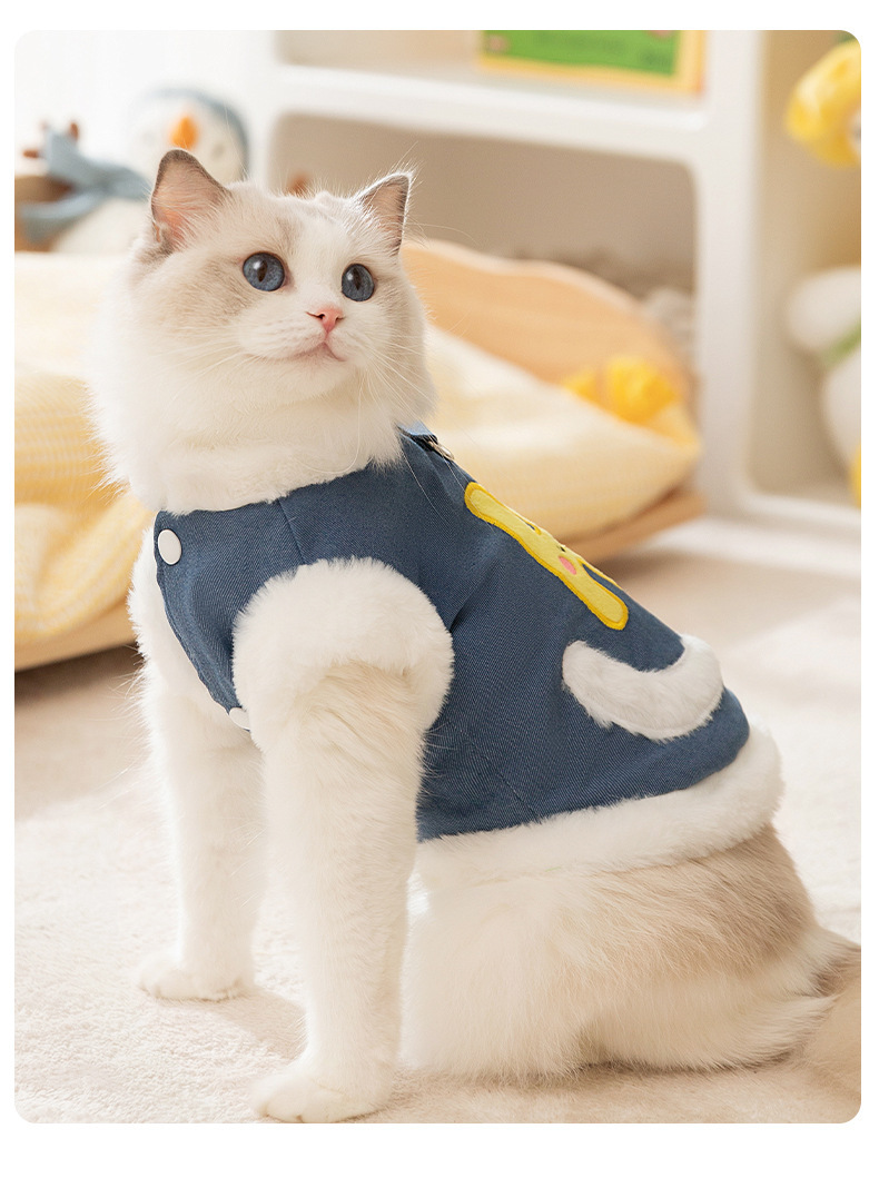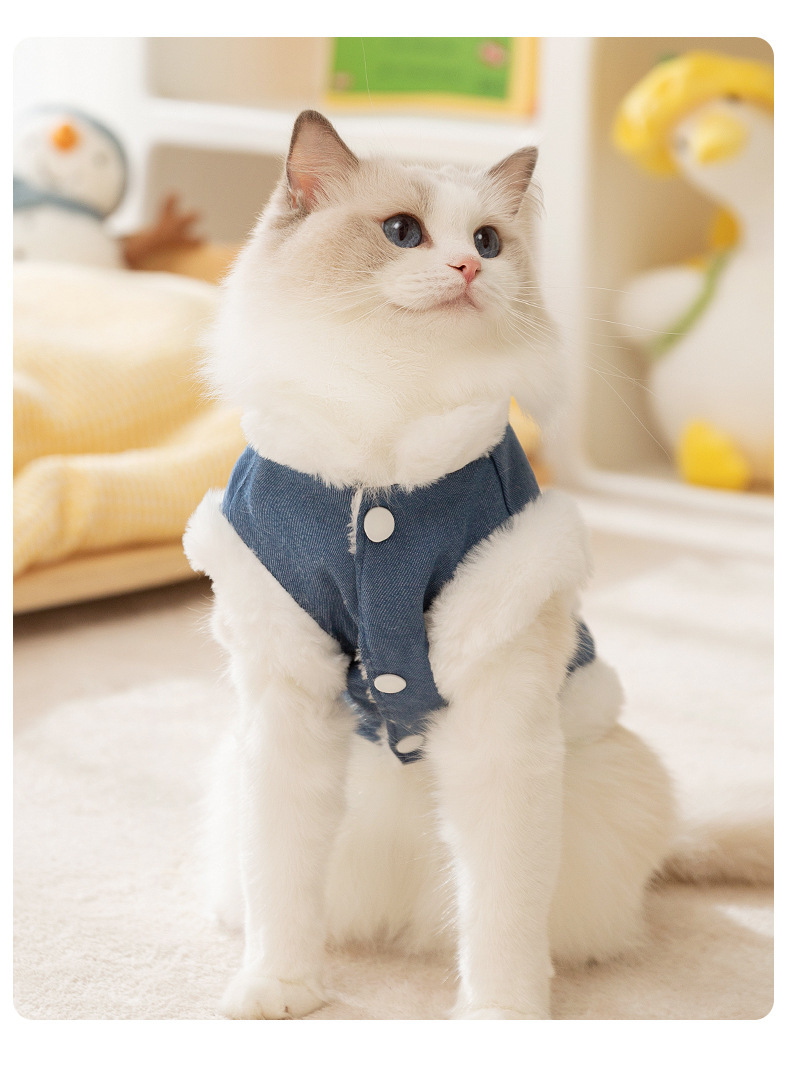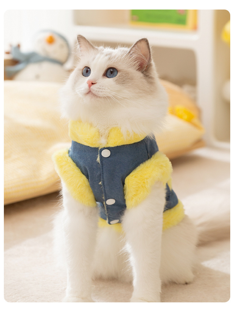 고양이 가을과 겨울 따뜻한 머리없는 고양이 데님 패션 조끼 면 옷 중소 개 애완 동물 옷스토어 가기